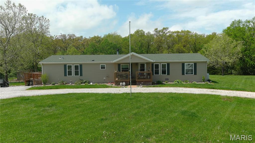Escape the city and embrace serene country living in this beautifully updated 3-bedroom, 2-bath home on 3 private acres (M/L) at the end of a quiet cul-de-sac, offering peaceful seclusion just a short drive from the metro area. Surrounded by lush forest and abundant wildlife, this nearly 2,000 sq ft retreat features a spacious great room with a floor-to-ceiling stone fireplace (easily convertible to gas), an eat-in gourmet kitchen perfect for gatherings, and a large primary suite with a jetted tub, separate shower, and double sinks. Enjoy your morning coffee on the covered front deck or back patio, and appreciate recent updates including hardwood floors, fresh paint, a 2020 architectural shingle roof, and new siding and gutters. Additional features include a 12x16 barn for storage and access to a stunning 12+ acre private lake. With modern comforts, natural beauty, and privacy, this turn-key home offers the ideal blend of convenience and tranquility.