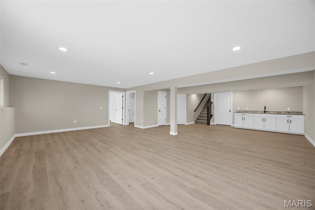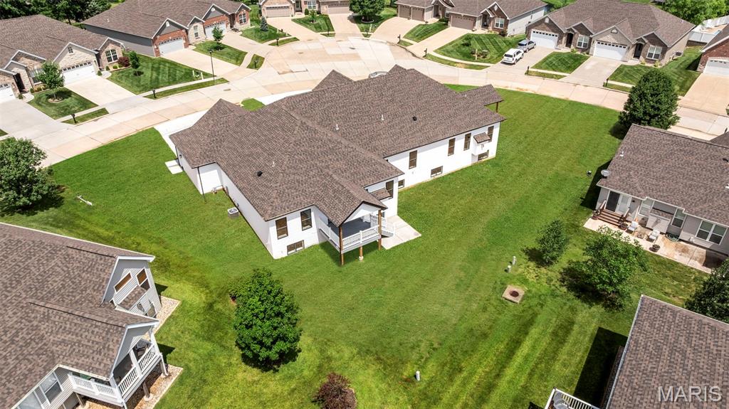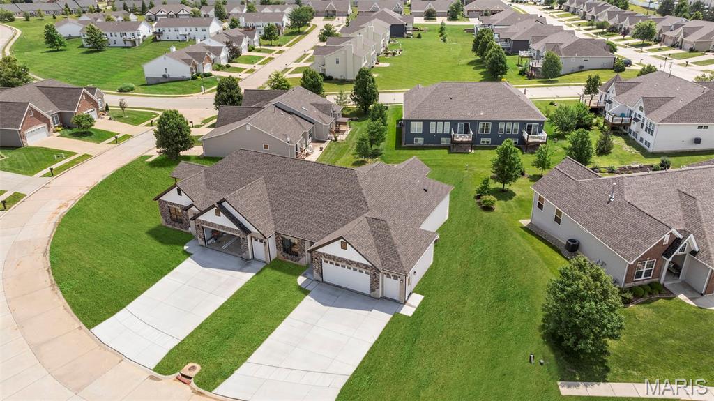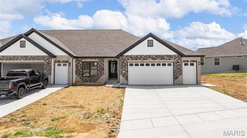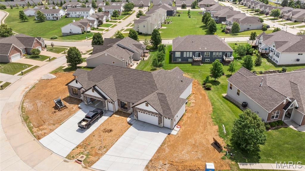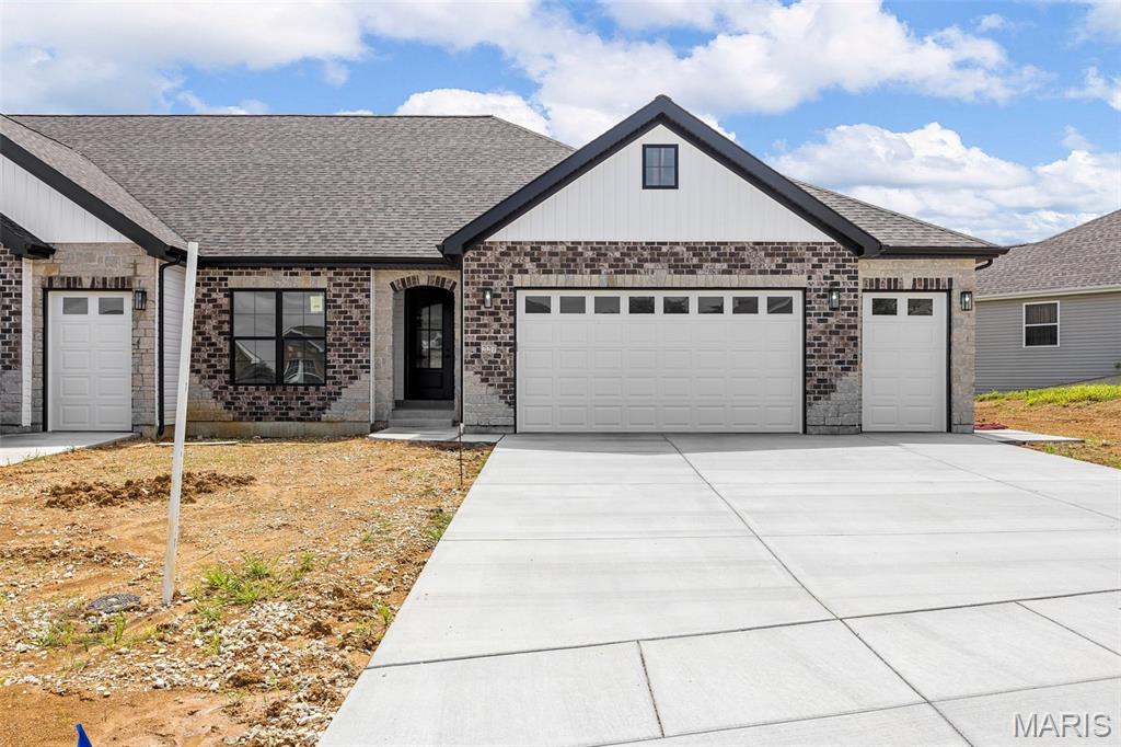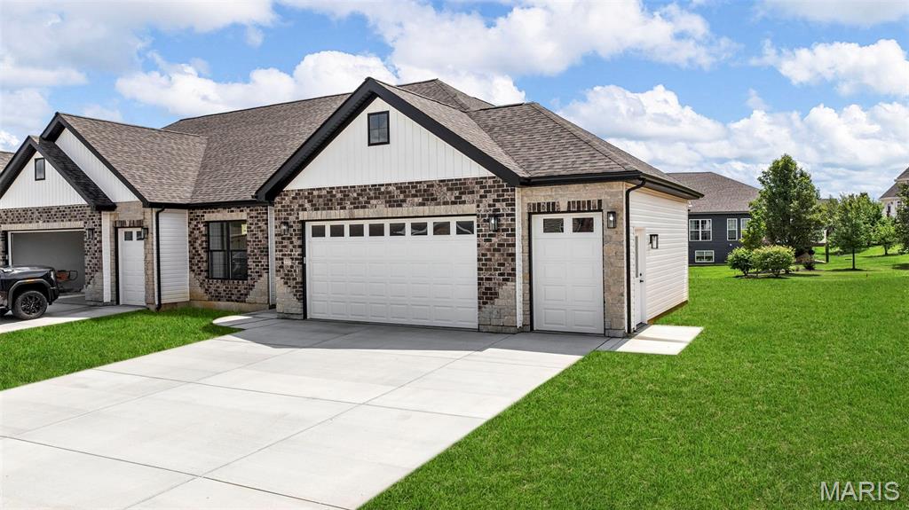 Gorgeous Ready to move into New Construction Villa in the heart of Wentzville - near shopping, dining & easy Hwy access. The craftsman detail plus extras like the stunning entry door and a golf cart garage will cause you to stop and take a second look. The open upscale look and feel offers a flexible floor plan to fit every buyers needs. If you love a big great room and a cozy dining area the set up allows it OR a big farmhouse table it works too....dream it and this open concept plan works for you. Tons of custom cabinets, drawers for easy storage, granite counter tops, a farmhouse sink, electric stove/oven, built in microwave, large center island with dishwasher and sink. Plenty of space to gather. Step out and enjoy your morning coffee on the covered deck - composite deck, vinyl railing, grilling patio and nice yard if a pet is in your plans. Irrigation system is maintained by the association as well as the water is included as well. Primary suite with walk in closet, craftsman doors, ceiling fan, onsuite with tall shower & dual sinks. Step over to the second bedroom with works well for a guest or a home office next door to it is a full bath with linen closet. If all of this is not enough the lower level offers a 3rd bedroom, full bath and rec room / family room. Full windows create a lookout for great sunlight. Plenty of storage space. Subdivision pool to cool off in our hot summers. The villa lifestyle gives you freedom from moving, snow removal and most exterior maintenance.