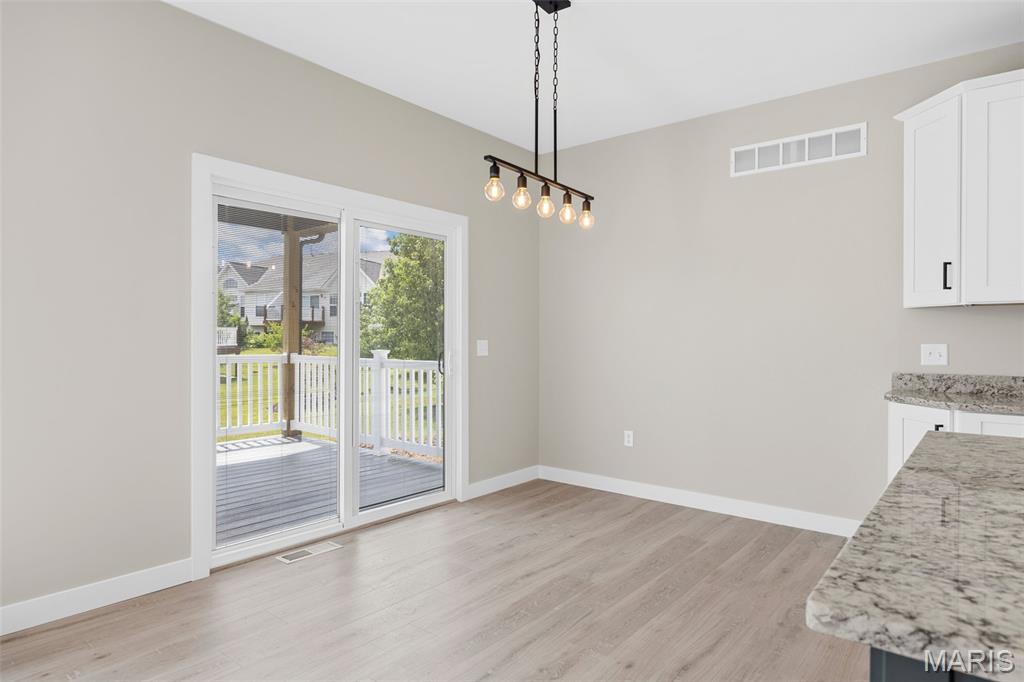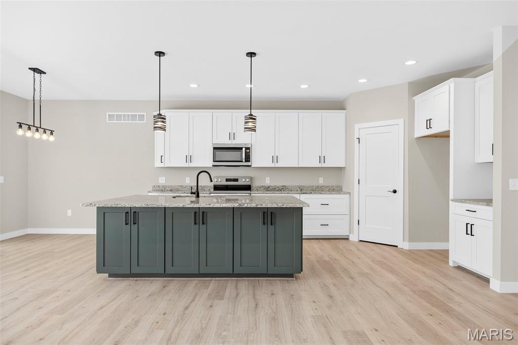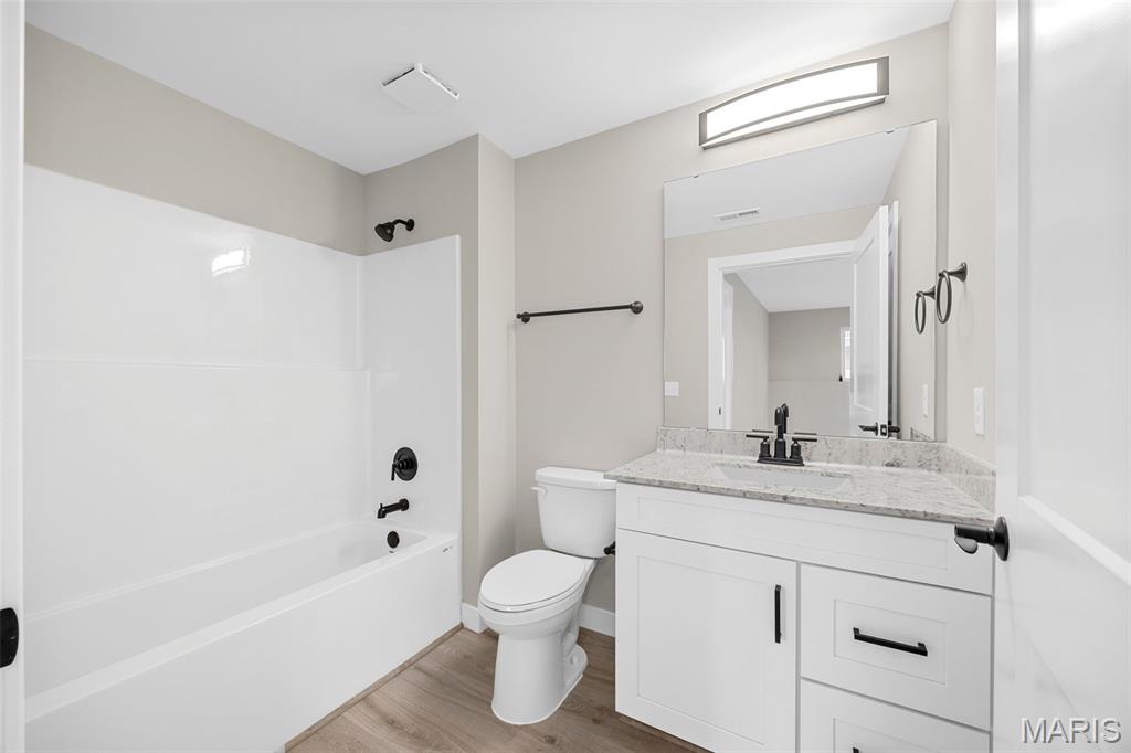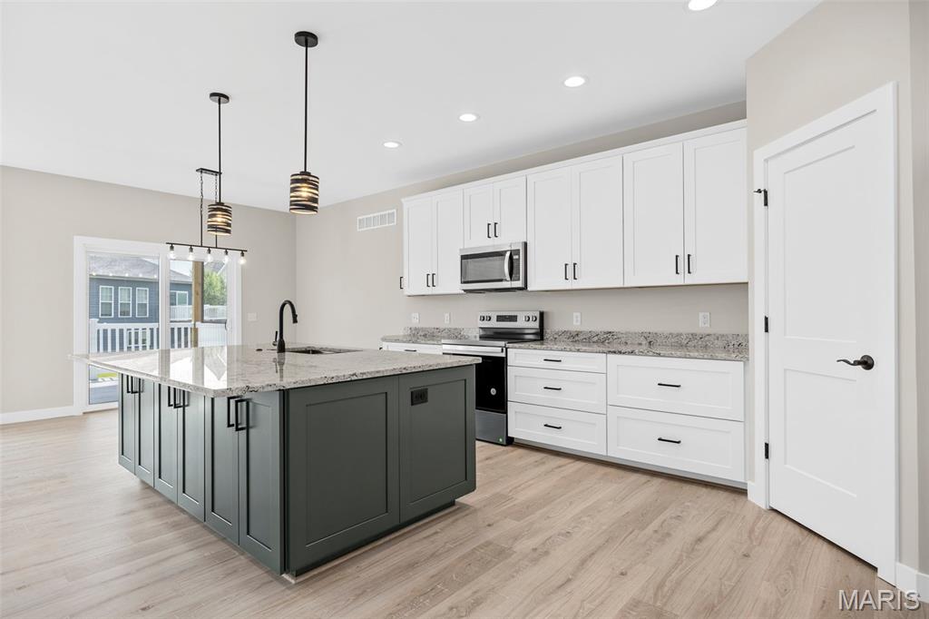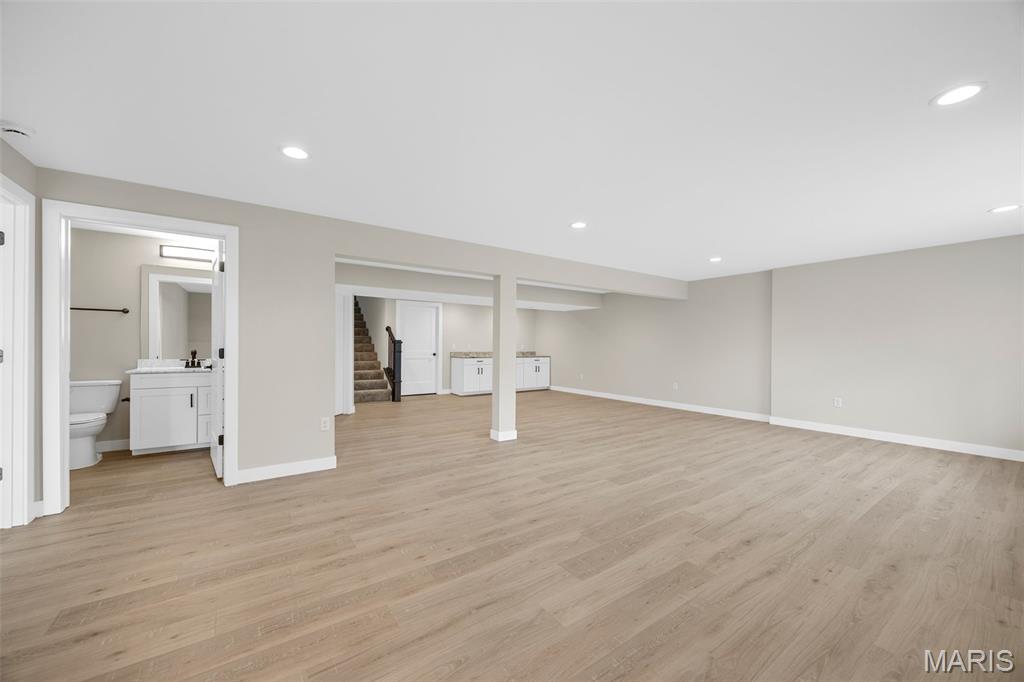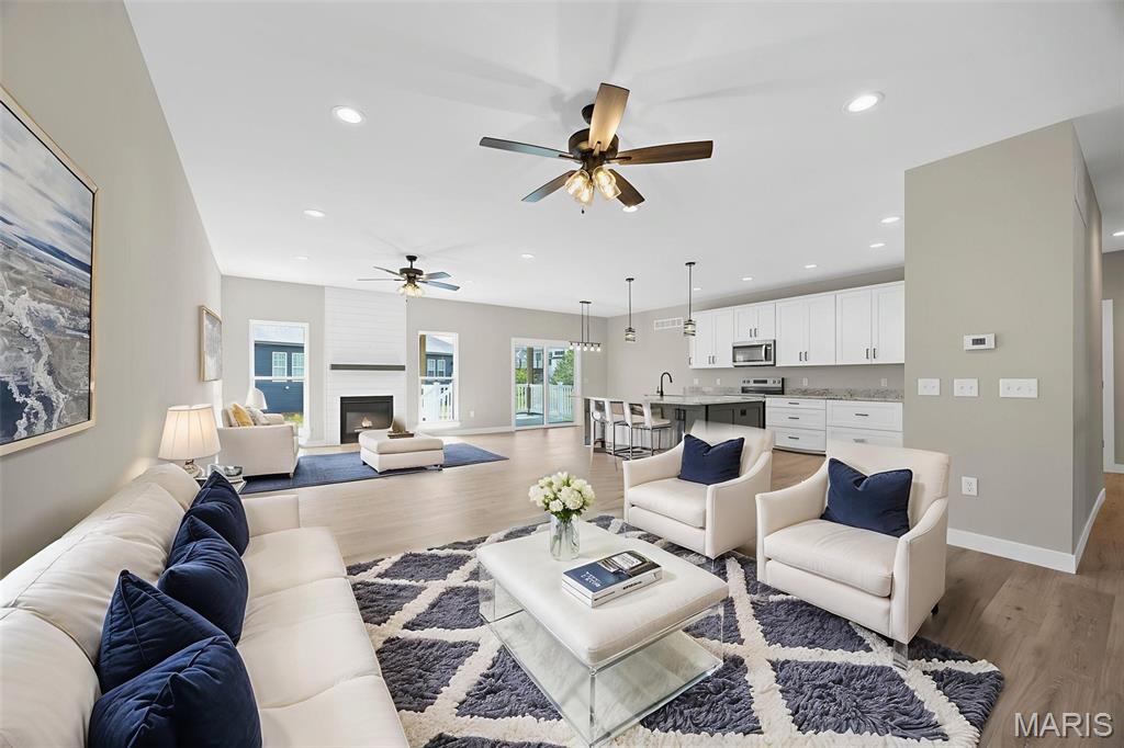 Gorgeous Ready to move into New Construction Villa in the heart of Wentzville - near shopping, dining & easy Hwy access. The craftsman detail plus extras like the stunning entry door and a golf cart garage will cause you to stop and take a second look. The open upscale look and feel offers a flexible floor plan to fit every buyers needs. If you love a big great room and a cozy dining area the set up allows it OR a big farmhouse table it works too....dream it and this open concept plan works for you. Tons of custom cabinets, drawers for easy storage, granite counter tops, a farmhouse sink, electric stove/oven, built in microwave, large center island with dishwasher and sink. Plenty of space to gather. Step out and enjoy your morning coffee on the covered deck - composite deck, vinyl railing, grilling patio and nice yard if a pet is in your plans. Irrigation system is maintained by the association as well as the water is included as well. Primary suite with walk in closet, craftsman doors, ceiling fan, onsuite with tall shower & dual sinks. Step over to the second bedroom with works well for a guest or a home office next door to it is a full bath with linen closet. If all of this is not enough the lower level offers a 3rd bedroom, full bath and rec room / family room. Full windows create a lookout for great sunlight. Plenty of storage space. Subdivision pool to cool off in our hot summers. The villa lifestyle gives you freedom from moving, snow removal and most exterior maintenance.