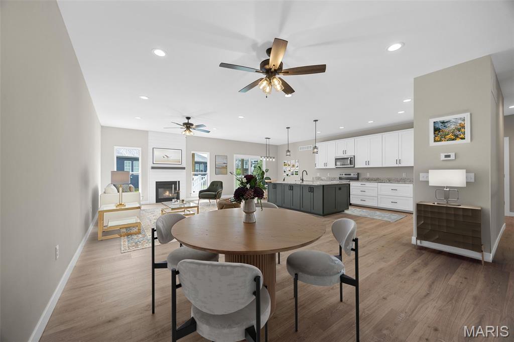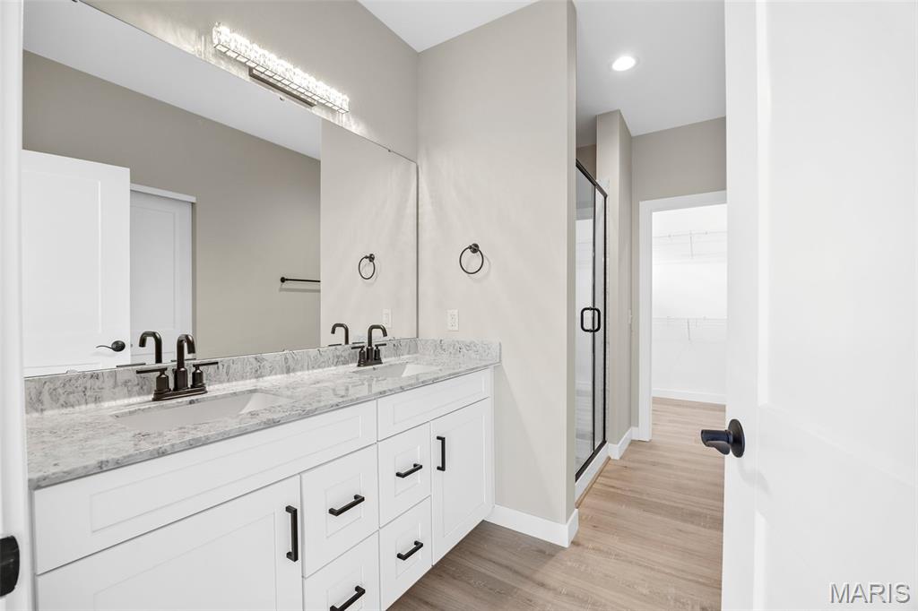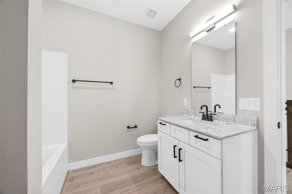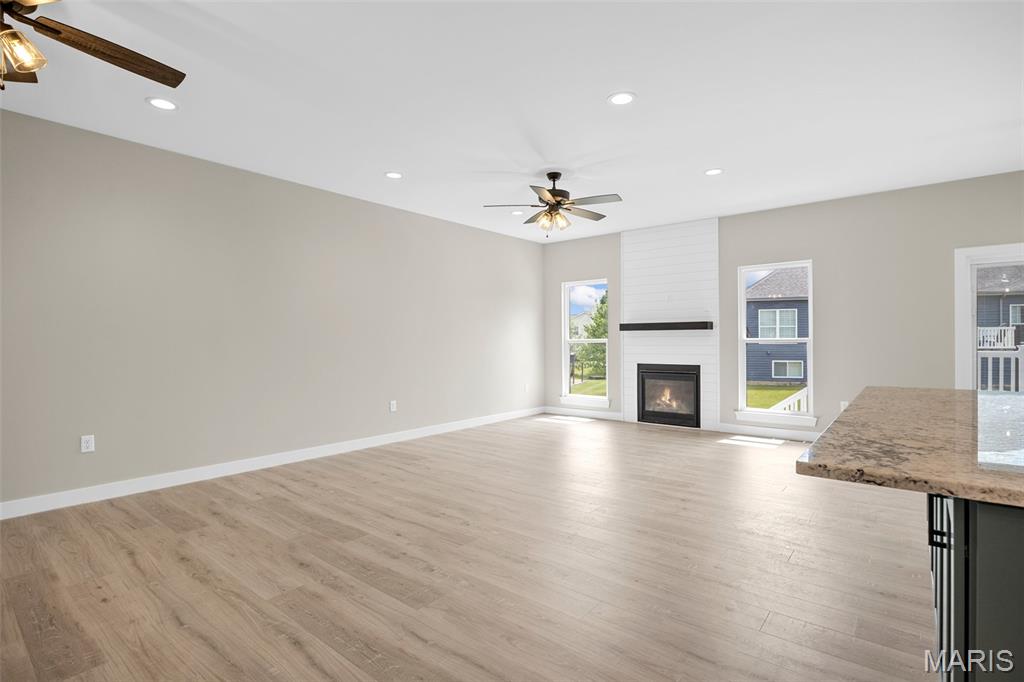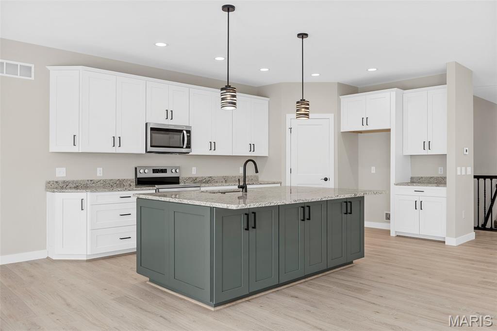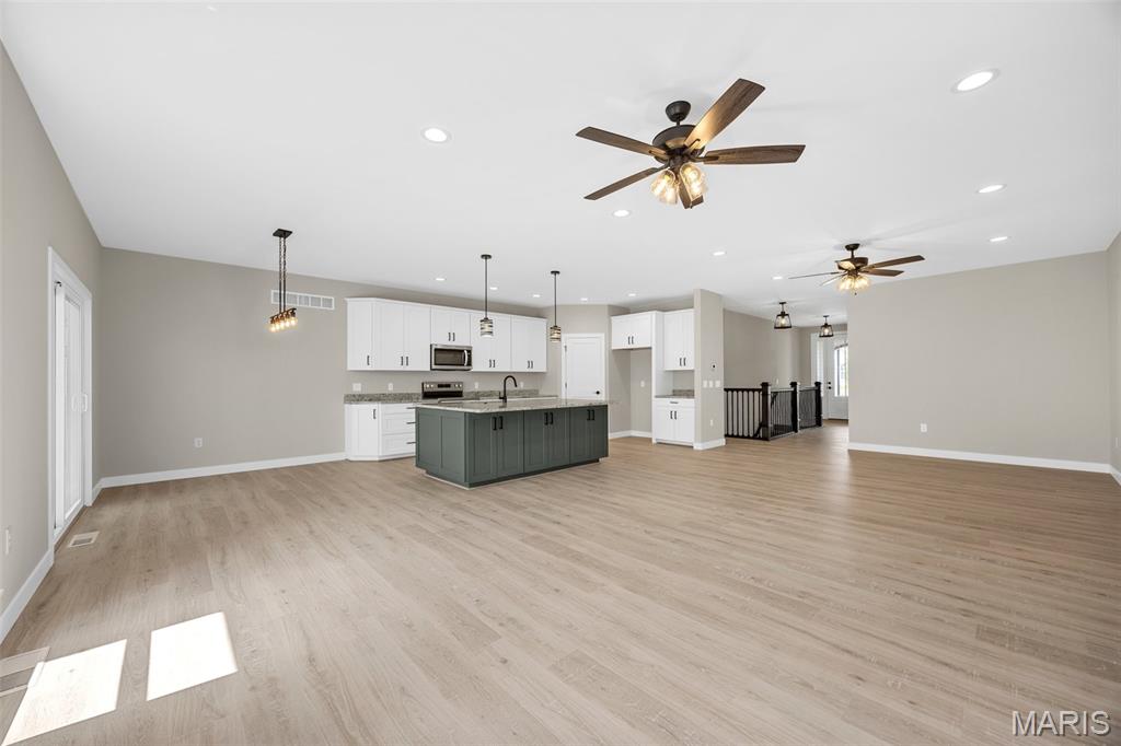 Gorgeous Ready to move into New Construction Villa in the heart of Wentzville - near shopping, dining & easy Hwy access. The craftsman detail plus extras like the stunning entry door and a golf cart garage will cause you to stop and take a second look. The open upscale look and feel offers a flexible floor plan to fit every buyers needs. If you love a big great room and a cozy dining area the set up allows it OR a big farmhouse table it works too....dream it and this open concept plan works for you. Tons of custom cabinets, drawers for easy storage, granite counter tops, a farmhouse sink, electric stove/oven, built in microwave, large center island with dishwasher and sink. Plenty of space to gather. Step out and enjoy your morning coffee on the covered deck - composite deck, vinyl railing, grilling patio and nice yard if a pet is in your plans. Irrigation system is maintained by the association as well as the water is included as well. Primary suite with walk in closet, craftsman doors, ceiling fan, onsuite with tall shower & dual sinks. Step over to the second bedroom with works well for a guest or a home office next door to it is a full bath with linen closet. If all of this is not enough the lower level offers a 3rd bedroom, full bath and rec room / family room. Full windows create a lookout for great sunlight. Plenty of storage space. Subdivision pool to cool off in our hot summers. The villa lifestyle gives you freedom from moving, snow removal and most exterior maintenance.