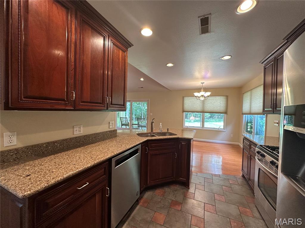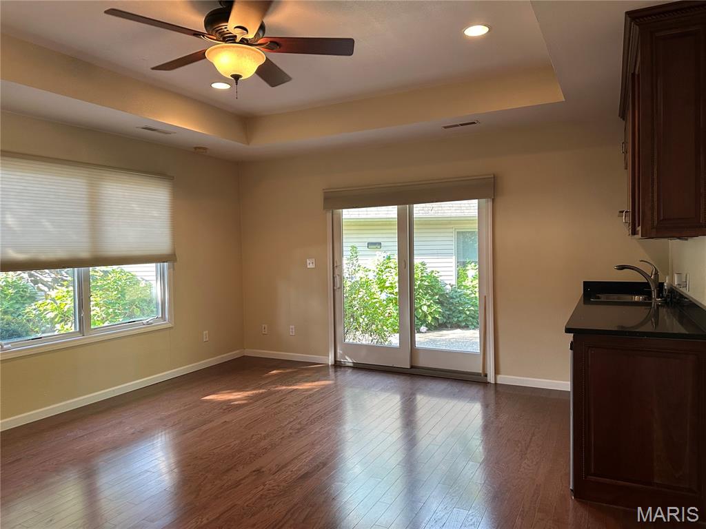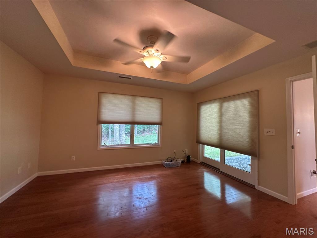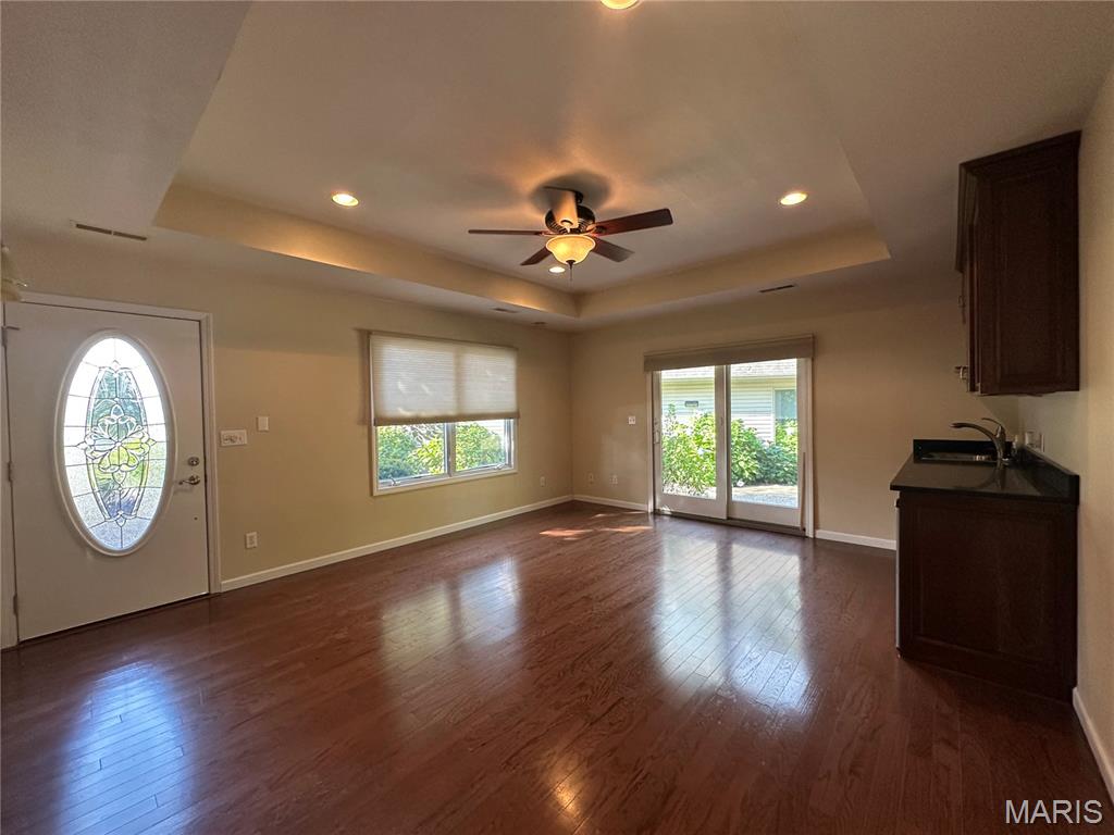 TWO HOMES.....Nestled at the end of a peaceful cul-de-sac, this impeccable custom-built property includes a 2-bedroom, 2-bath main home plus a beautifully finished 1-bedroom guest house—perfect for multi-generational living or a dedicated caretaker. The main residence showcases soaring vaulted ceilings and a spacious open floor plan. The living and dining areas feature rich wood flooring and open seamlessly to a covered patio, ideal for entertaining or relaxing in the tranquil, park-like setting. The custom kitchen is a chef’s dream with stunning Brazilian cherry cabinetry, granite counter tops, and a generous pantry. Retreat to the primary suite, complete with an oversized jetted tub, walk-in shower, and a large walk-in closet. The attached garage provides convenience and extra storage. The guest house offers its own charm with an open concept living space, coffered ceiling, kitchenette with mini fridge and microwave, a large bedroom with walk-in closet, and a luxurious full bath with jetted tub and separate shower. Located in a beautiful, well-maintained neighborhood, this unique property is ideal for hosting guests, housing loved ones, or providing care close to home—without sacrificing privacy or independence.