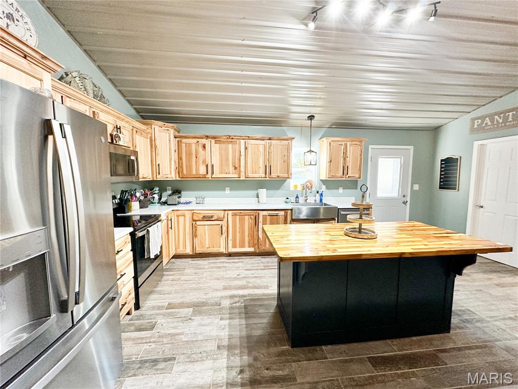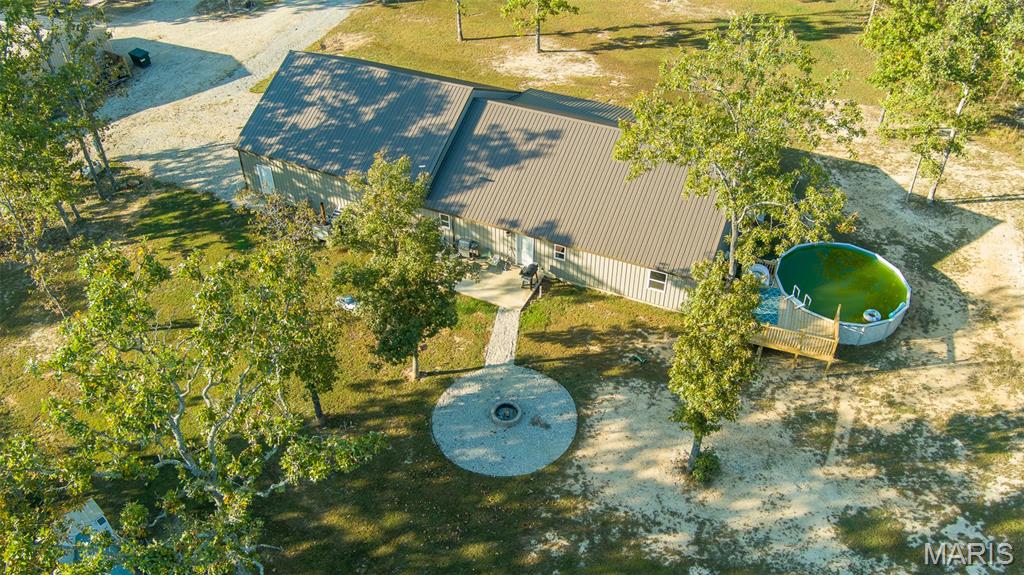 Escape to your very own 9.75-acre paradise, mostly wooded, where the thrill of the hunt meets the comfort of home. This property boasts abundant wildlife, and you can see the proof for yourself with our game cam deer pictures! After a successful day in the great outdoors, unwind in your 2000 sq ft home, built in 2022. This spacious residence features 3 bedrooms and 2 baths. Great room has a cathedral ceiling and tile floors. The kitchen has custom-built hickory cabinets, complete with two lazy Susan's, soft-close features, a convenient pan drawer, and a trash can drawer and a farmhouse sink. The large island offers ample storage. Stainless appliances and a walk-in pantry. The primary bedroom features an en-suite with a separate shower, jetted tub, double vanity, and tile floors. Two additional bedrooms and a full bath provide comfort for guests and family. Large laundry/mud room. Electric heat pump, central air for the home and an outside wood furnace that heats the garage. Concrete slab home, metal siding and metal roof. Jeld Wen double pane windows. Shared driveway and shared drilled well with adjoining neighbor. Lagoon. Enjoy the convenience of an attached 3-car garage, (air compressor and lift do not stay) perfect for all your outdoor gear and vehicles. Step outside to discover your own oasis, complete with a refreshing 24' round, 52" high, steel sided swimming pool with deck and a cozy fire pit area, ideal for gathering around after a day of hunting and swimming. Chicken house does not stay. LOTS TO OFFER!