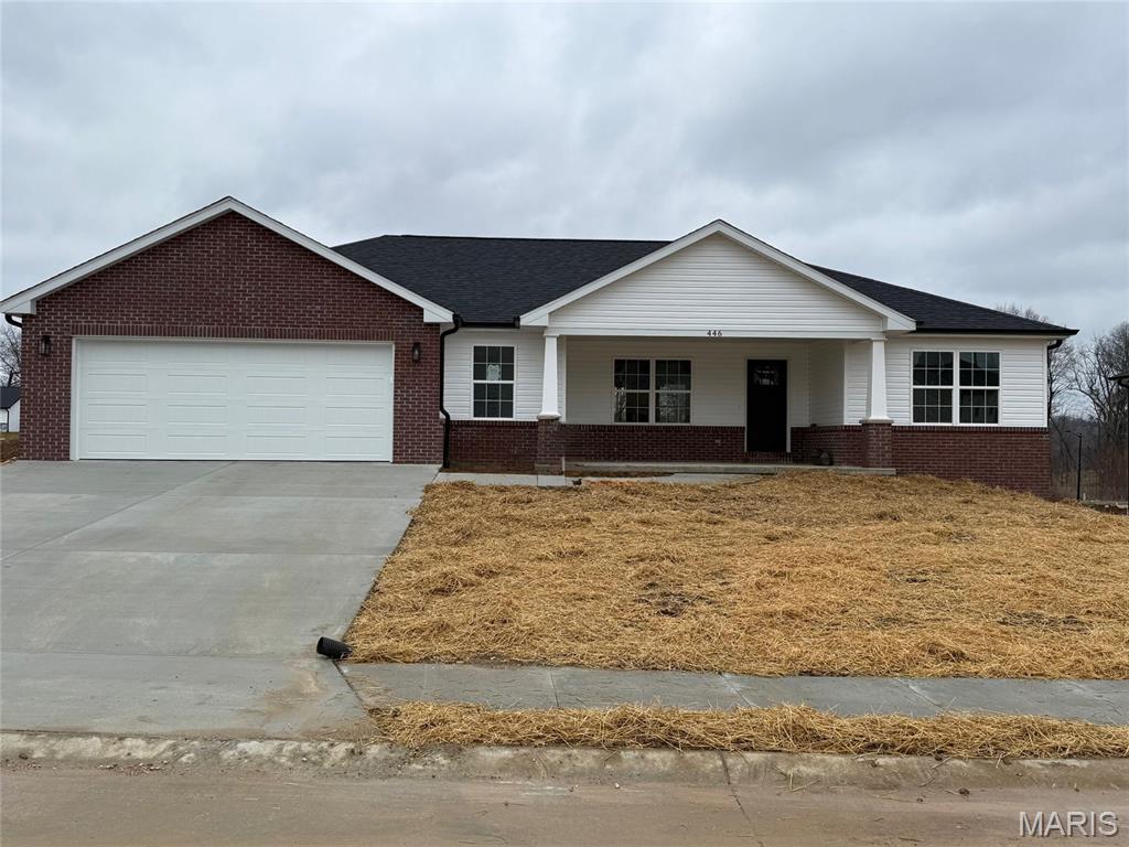 Nothing beats the smell of BRAND NEW! HURRY and you can PICK OUT your own INTERIOR finishes. Popular McKendree Crossing-not many homes left. Vaulted ceilings, with living room, kitchen and dining opening to each giving extra space and room + that also opens to a covered deck. The split bedroom concept gives privacy, with a great size primary bedroom and primary bath featuring an abundance of cabinets, double vanity, walk-in shower as well as a nice sized closet. Stylish kitchen with center island, solid surface countertops and stainless steel appliances. No carpeting on the main floor with luxury vinyl flooring all through-out. Full walk-out basement offers a pre-designed layout for a full bathroom, family room, 4th bedroom, Double Doors to exterior and plenty of storage for later expansion. A great neighborhood in Jackson School District, East Elementary, close to interstate access and Cape. Buyer still has time to pick out interior finishes.