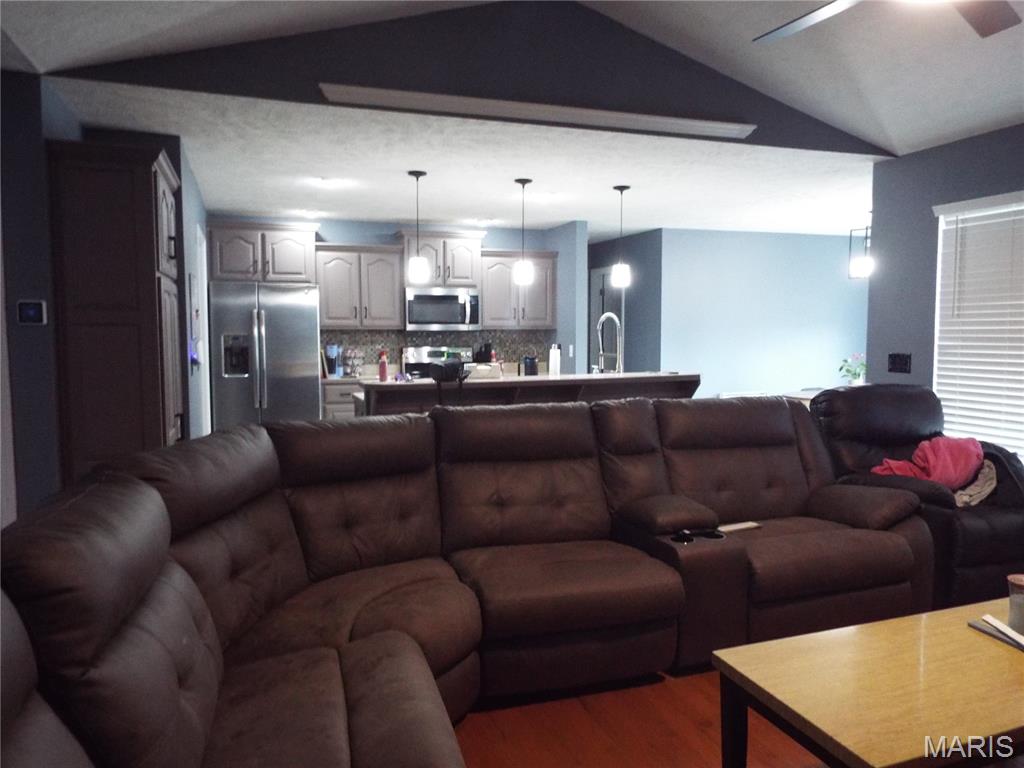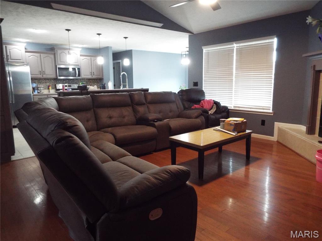 Located in the Woodland Hills subdivision of Waynesville is this 5-bedroom, 3-bathroom ranch style home with a full finished walk out basement. Through the entry foyer you enter the living room with vaulted ceilings, wood flooring and opens to the kitchen/dining area. Kitchen features a center island, stainless steel appliances and ceramic tile flooring. Master bedroom suite features a tray ceiling, walk in closet, double vanity, jetted tub and tiled shower. Two additional guest bedrooms, an office, and full bathroom are also located on the main level. Downstairs, there is a large family room, two more bedrooms, second office space and third full bath. Walk into the backyard and enjoy sitting on the deck and above ground pool! There is also a patio, shed, privacy fenced. Other great features include a two-car garage with epoxy floors. This home has also offered "smart fans" first floor controlled by remote or app. The light fixtures on the main floor have all been updated/replaced. Hardware and paint updates on kitchen cabinets and bathroom vanities. New dishwasher installed 2025. The master bedroom and ensuite have blackout blinds. All bathrooms have been updated with rain shower heads with secondary detachable shower heads. Fresh paint in the bathrooms, main living spaces, and master bedroom. Pool was professionally installed in summer of 2024. Don't miss out on this great property! Call to schedule your showing today. Seller to have the home and carpets professionally cleaned for the new homeowner.