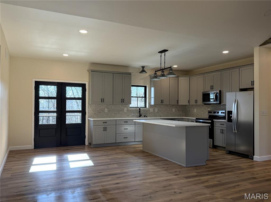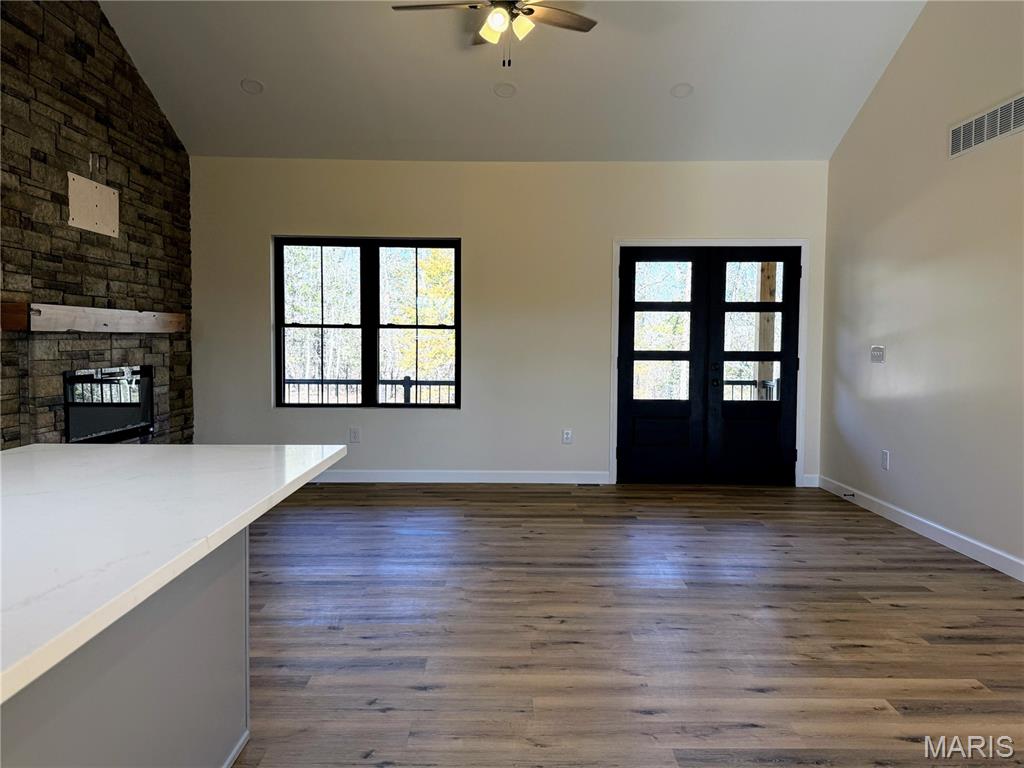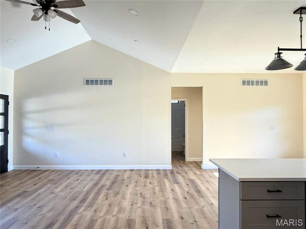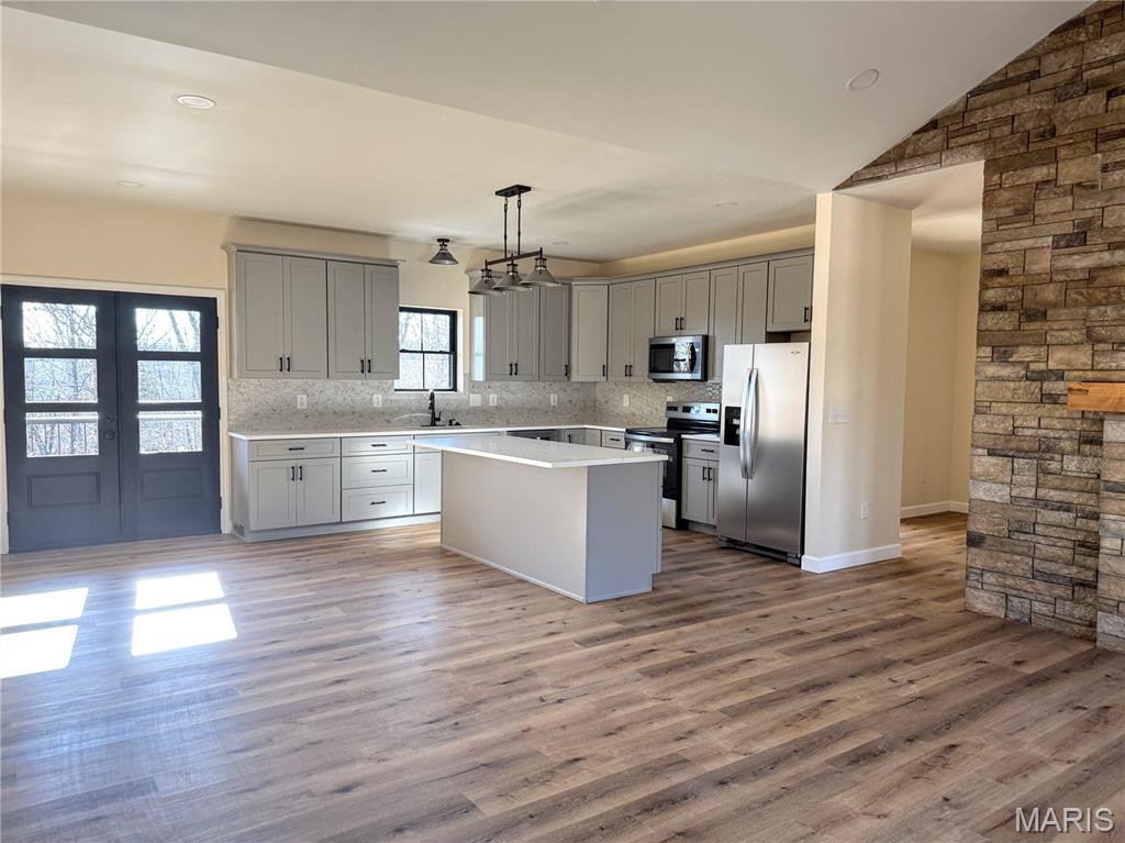 Discover exceptional new construction on 2.55 acres in Terre Du Lac! This nearly completed 4-bedroom, 3.5-bath home blends modern comfort with peaceful acreage living. The main level features bright, open spaces centered around a stunning stone electric fireplace, creating a warm and inviting gathering space. Quality shines throughout, including stamped concrete driveway, sidewalks, porches, and patios that add curb appeal and long-lasting durability. The partially finished walkout basement offers incredible versatility with its own second kitchen, additional bedroom, full bathroom, and a storm shelter/storage room with electric—perfect for safety, hobbies, or extra storage. With abundant windows and open space, the lower level lives like a private suite. A 3-car attached garage, dedicated workshop, and fenced backyard provide all the functionality and outdoor enjoyment you need. Located in the desirable Terre Du Lac community with access to lakes, golf, and amenities, this brand-new home delivers both tranquility and convenience. A rare opportunity to own a beautifully finished walkout home on acreage—don’t miss your chance to make it yours!