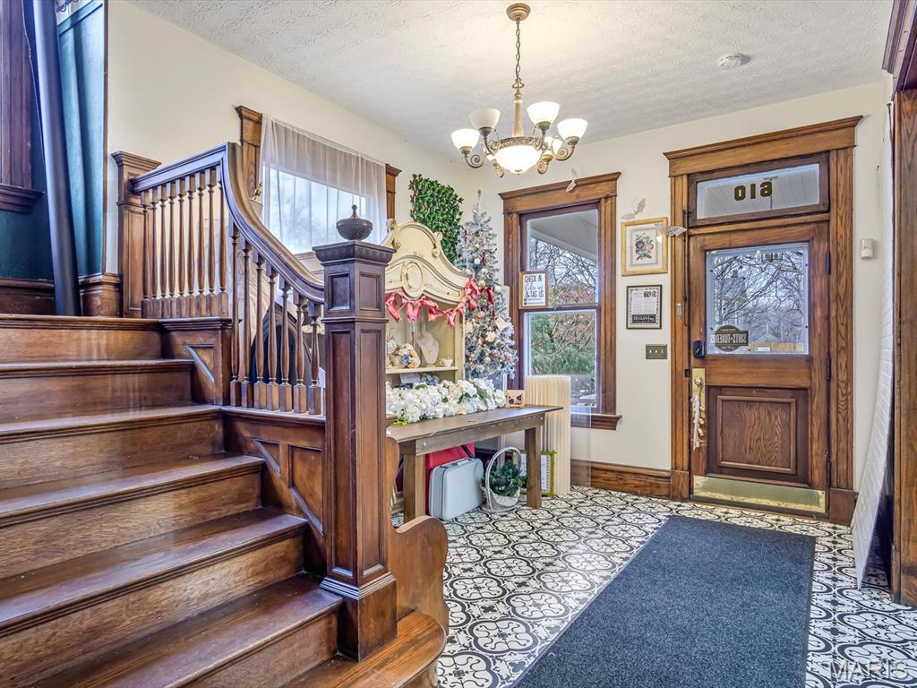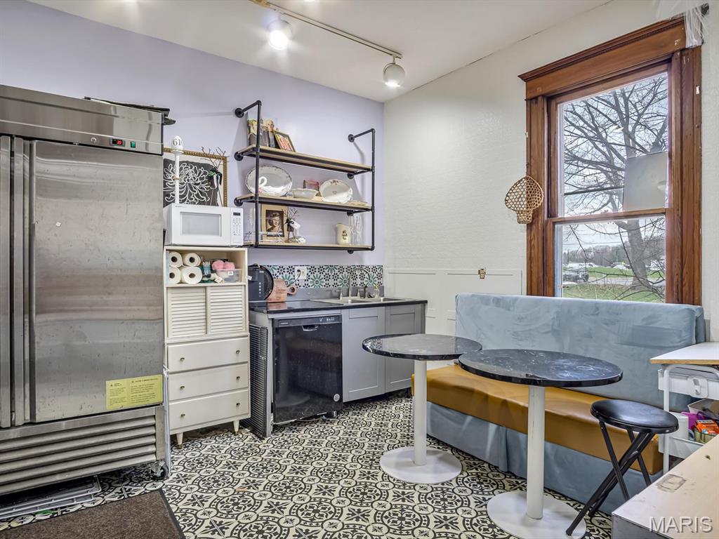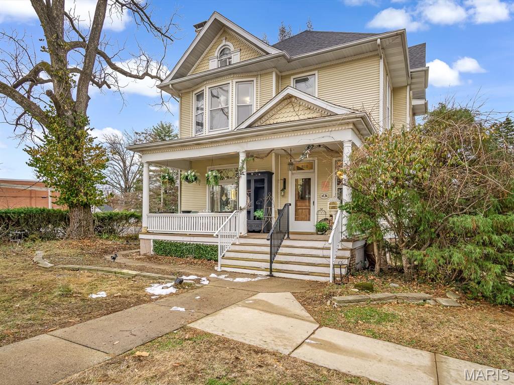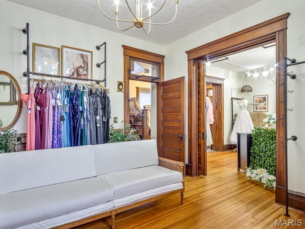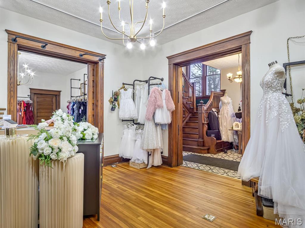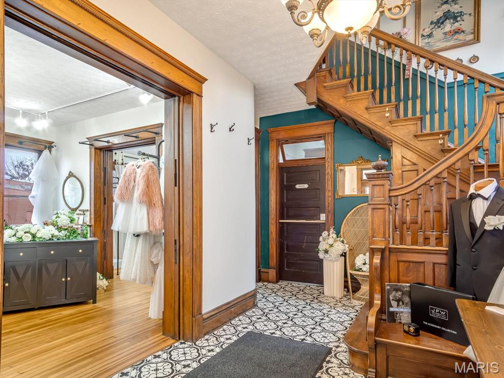 Prime commercial opportunity in the heart of Edwardsville. Just steps from Downtown Edwardsville, the Madison County Courthouse, and the beloved Goshen Market, this beautifully maintained property at 610 Saint Louis Street offers exceptional visibility and walkability for a wide range of business uses. With 2,594 square feet across three finished floors, this building blends historic charm with modern updates—including a new roof in 2024. The current owner utilizes the entire space for commercial/retail, but the layout provides flexibility for office, boutique, creative studio, service-based business, or mixed-use possibilities (buyer to verify permitted uses). The main level features gorgeous hard-surface flooring, including original hardwood that adds warmth and character throughout. A welcoming foyer, beautifully crafted wood staircase, kitchen, and bathroom make this level both functional and inviting—ideal for customer-facing operations. On the second floor, you'll find two spacious rooms, a dedicated office, a walk-in closet, and an additional bathroom, offering a variety of workspace or showroom configurations. The third floor is a standout feature—an impressive 32' x 32' open space with two walk-in closets, ready to be tailored to your vision. Storage, studio, shared workspace, conference area—the possibilities are endless. With its sought-after location, timeless architectural details, flexible floor plan, and important updates already completed, this property is a rare opportunity in one of Edwardsville’s most desirable commercial corridors.