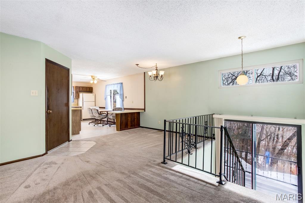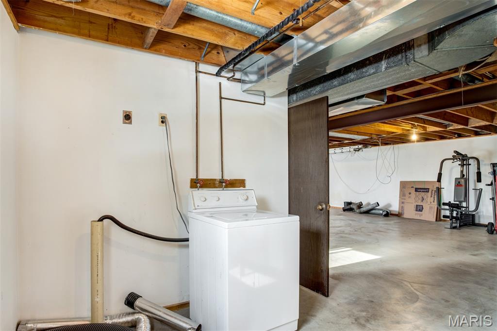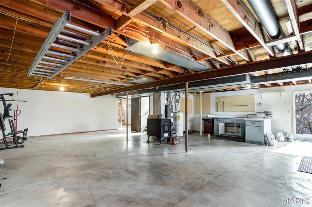 Great opportunity to secure a spacious ranch home on a full acre with 2 car garage, 3 bedrooms and 2 full baths on main level, additional driveway parking, and full walk out basement! Located in Seckman schools on a low traffic street, this home presents plenty of room for sweat equity. Graced with brick front, insulated replacement windows, furnace and A/C in 2022, roof 2014, gutters 2024, water heater 2009, newer insulated front and rear entry doors, drywalled garage and some drywall in basement. Home is all electric and on public water. Woodburning stove can be attached to the forced air system ductwork to provide or supplement the heating. Home sold as-is with no further repairs.