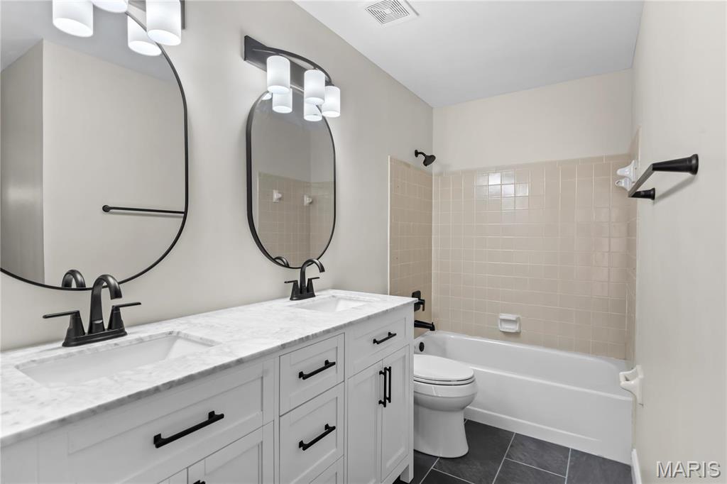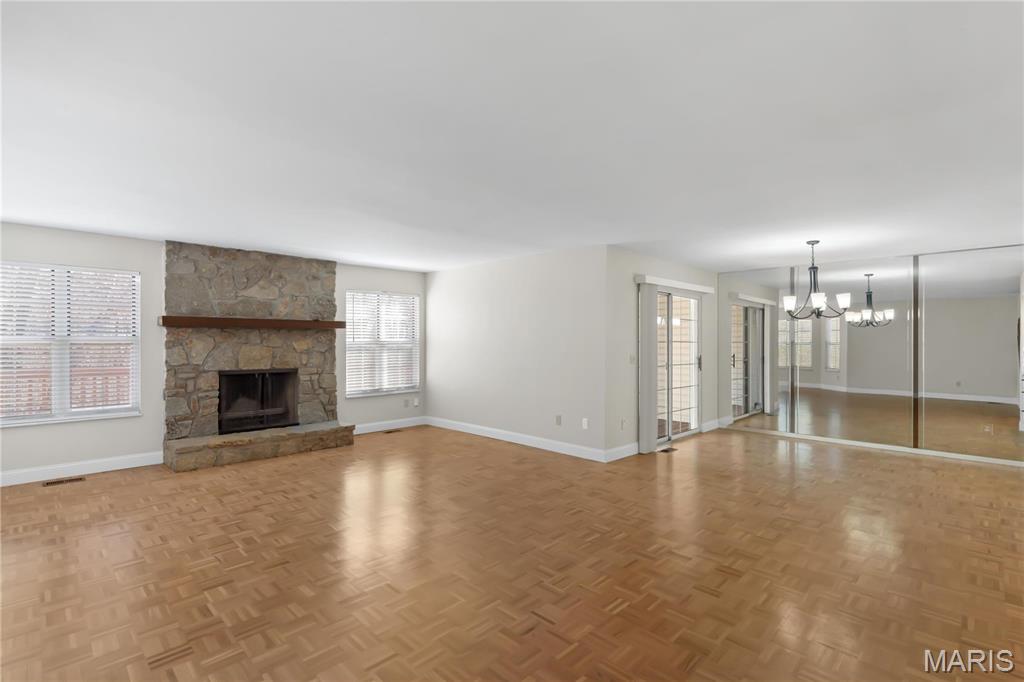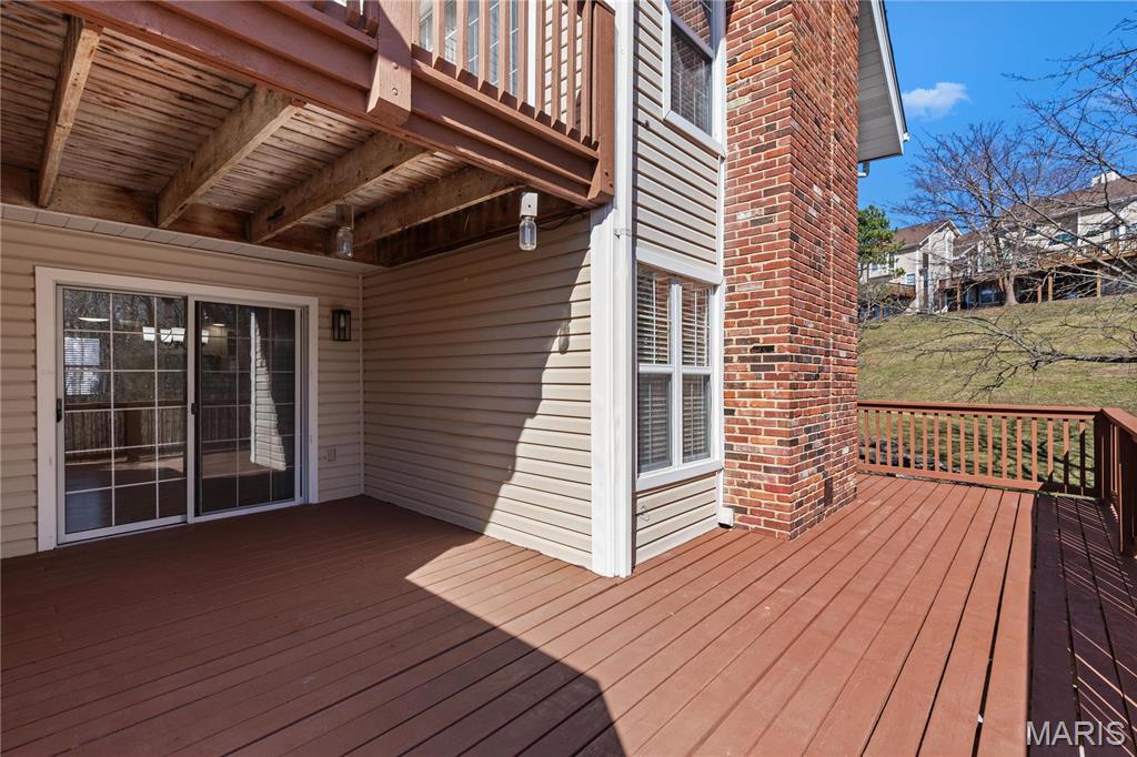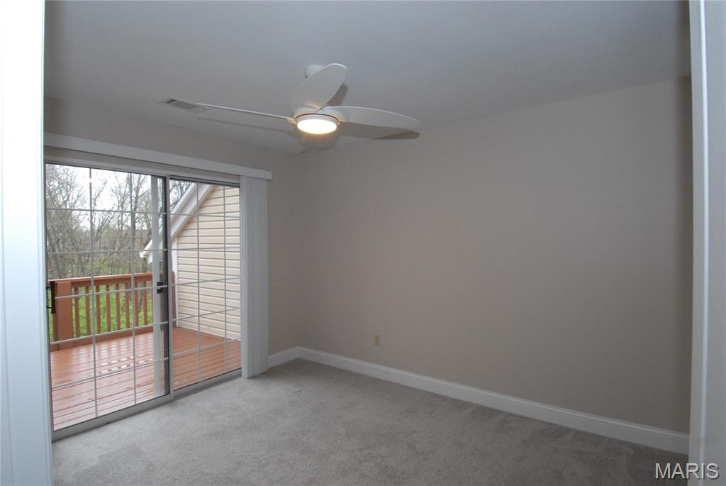 Beautiful private setting Heritage Hill Condominium. Newly remodeled 3-bedroom 2.5 bath townhouse with 2 sundecks and patio that back to woods. New kitchen cabinets, countertop, fridge, stove, microwave, and dishwasher. Great room includes wood burning fireplace and wet bar. Second floor laundry includes washer and dryer. Primary suite vaulted ceilings, 2 closets, bathroom with separate tub and shower and skylights. New vanities and blinds. 1980 square feet of living space. Extra-large 2 car garage with extra storage. Subdivision pool. Great location with easy access to Hwy 364. Available for occupancy soon. One year lease minimum. $2250 security deposit Only utility bills for tenant is electric (condo is all electric) and sewer bill. Pets negotiable. Broker owner. Location: Ground Level