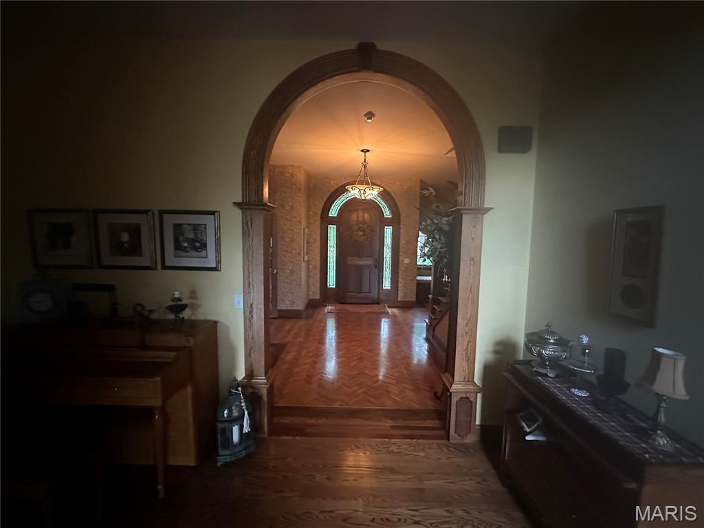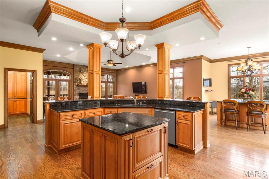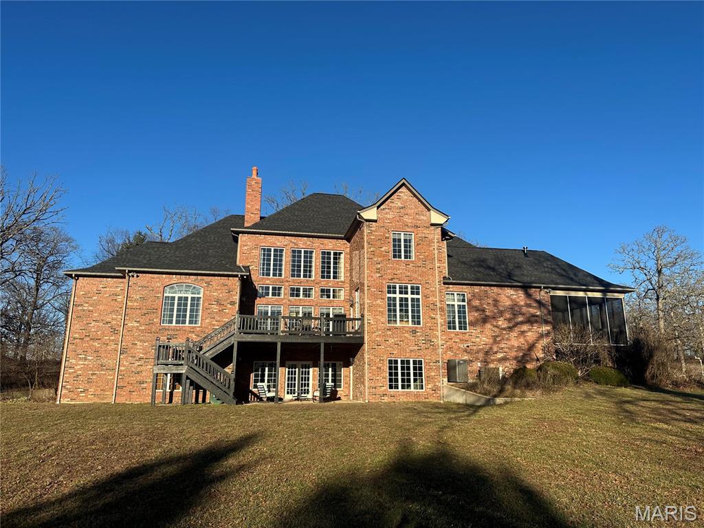 This is the one! 5 beds, 4 1/2 baths. 6,836 sq. ft. of finished living area on 3 floors. Full brick with luxurious primary on main level. Enjoy 3 fireplaces, miles of custom millwork, a chef's kitchen featuring custom cabinetry, 3 dish washers, Wolf cooktop and double oven, 48" SubZero, granite countertops, a breakfast bar, wet bar, butler's pantry, walk-in pantry, a library and separate formal dining. The upper level includes an additional private suite with attached full bath and the 2 additional bedrooms share a jack-and-jill bath, and a craft room with built in cabinetry. The upper floor office has built-in shelving and features an L-shaped desk overlooking the scenic outdoor view through the cat walk. The finished space over the garage has endless possibilities. The lower level has an oversized suite with private bath, a den with double French doors to the lower patio and another bonus room. Additional unfinished space makes storage a breeze. This dream home overlooks two ponds with an overflow waterfall feature beneath the walk-bridge. Abundant wildlife, oversized 3 car garage. New roof with transferrable labor and shingle warranty completed 8/14/2025. Perfect for a corporate retreat with 3 bedroom suites. Close to the Ozark National Scenic Riverways and only two hours from St. Louis. Broker owned.