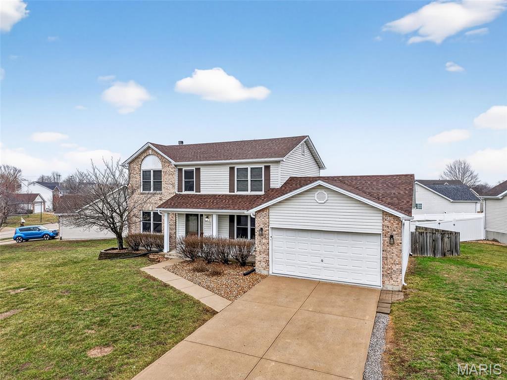 This beautiful two-story, four-bedroom home in highly sought after Patriot's Landing offers the perfect blend of comfort, space, and functionality. The main level features an open-concept layout with a spacious living room and sitting room filled with natural light, a modern kitchen with ample cabinetry and center island. A convenient powder room and laundry area complete the first floor. Upstairs, the primary suite provides a private retreat with a generous walk-in closet and a well-appointed en-suite bathroom featuring a soaking tub and a separate shower. Three additional bedrooms offer plenty of space for family or guests and share a full bathroom with modern finishes. The finished basement expands the home’s living space, making it perfect for entertaining or relaxing. It includes a stylish wet bar creating a great space for hosting in your "Man Cave". A convenient half bath adds functionality, while the remaining open area can be used as a playroom, game room, home gym or office. With its thoughtful layout and inviting living spaces across all three levels, this home is designed to meet the needs of modern living while offering warmth and comfort throughout. This home is conveniently located close to schools, shopping, restaurants and highways. Everything you need(and more) is just a 5 minute or less drive. Seller is offering a $5K flooring allowance to go towards upstairs carpet. As an added bonus the roof was replaced in September of 2025.