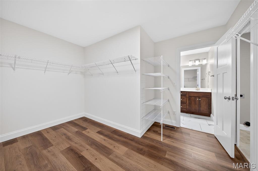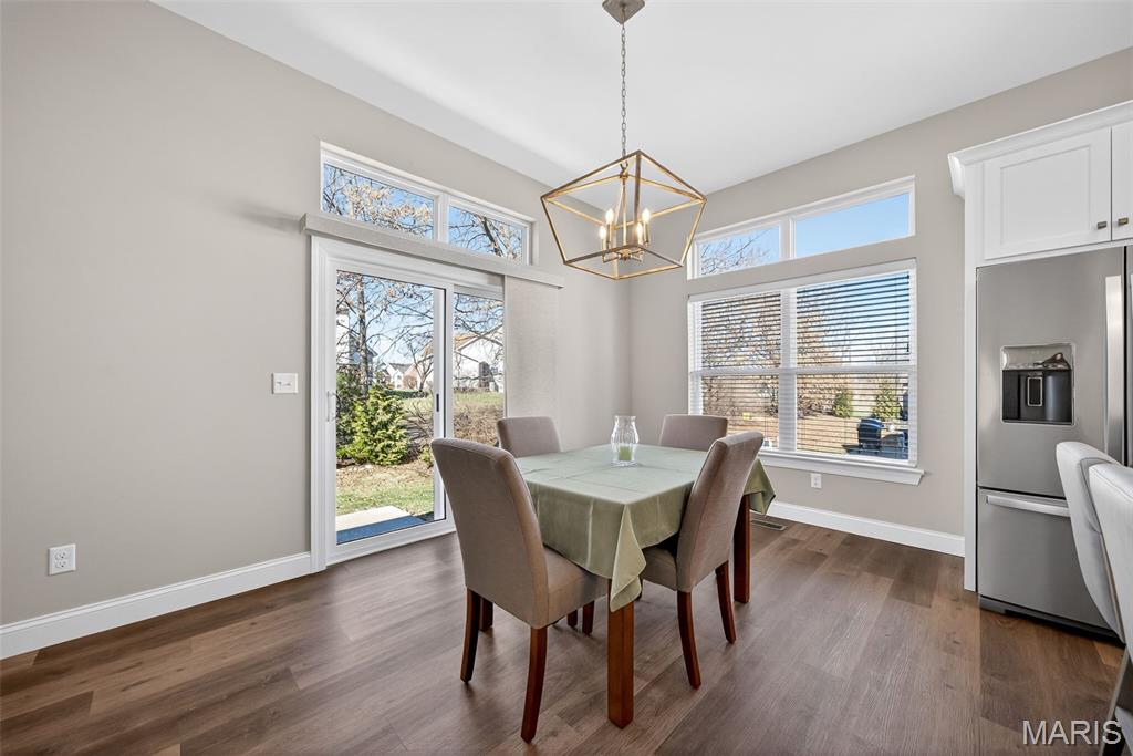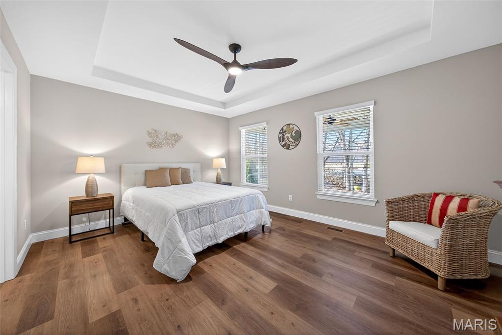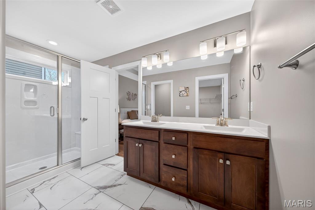 Prepare to be wowed by this 3 BD, 3 BA ranch with todays most on-trend finishes. Creekside Landing is an intimate neighborhood of only 32 single family homesites. This impressive ranch offers 1,877 sq ft on the main and a full bath and large Fam/Rec Room in the finished lower level for a total of approx 2,300 sq ft of finished living space. The exterior is inviting with stone, vertical and shake accent siding, arch shingles, carriage style garage doors, coach lights and an oversized (24 ft D x 31 ft W) 3 car garage. Features inc Lux Vinyl Plank flooring throughout the main, 10 ft ceilings in the Great Room-Kitchen-Dining area, gas FP with stacked stone surround, tray ceiling in the Primary Suite, transom windows, quartz countertops, 42 inch cabinets with crown, island with seating bar, tile backsplash, SS appliances, smooth top stove, micro, recessed lighting, ceiling fans, wrought iron stair spindles, tall base trim, craftsman style doors, spacious secondary bedrooms, large shower in the Primary Bath with bench seat, double bowl raised height vanities, large walk in closet, main floor laundry room accessible from two locations including the Primary Suite, hi effic HVAC, boot bench at the owners entry and more. There is a 9x16 screened porch, an open patio, and a level, tree lined yard. Enjoy this incredible Lake St. Louis location with easy access to Hwys 364, 70 and 40/61, the Shoppes at Hawk Ridge, The Meadows, parks, recreation and more. It’s a WOW!