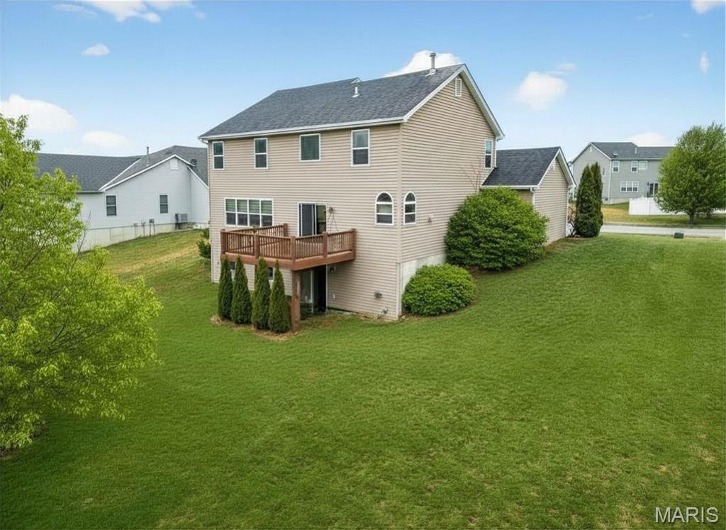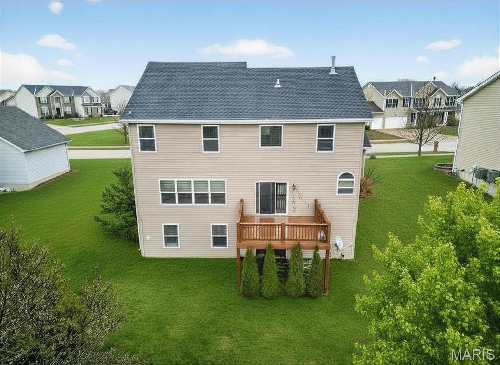 Welcome Home!This spacious 4 bedroom, 4 bathroom (2 full & 2 half), two-story home offers over 3,100 Sq Ft of finished living space, designed for both relaxation and entertaining. The main level features 9ft ceilings, home office or flex room, separate dining room, and a spacious family room with a gas fireplace. The eat-in kitchen opens to the family room and includes a large center island/breakfast bar, hardwood flooring, 42-inch cabinets, and stainless appliances. It leads directly to a deck that is ideal for BBQ'S and outdoor enjoyment. Main floor laundry room and a half bath complete the main level. Upstairs, you will find a large primary suite featuring a tray ceiling with walk-in closet, and an en suite bath with a separate tub and shower. 3 additional bedrooms, each with its own walk-in closet, and a second full bath are also located on the upper level. The partially finished walkout basement provides a recreation area, a half bathroom, and ample storage space. Bonus: New roof 2022! Located in Stone Meadows, residents enjoy access to two subdivision pools, club house, paved trails, and ball fields. This home and neighborhood offer everything a family needs!