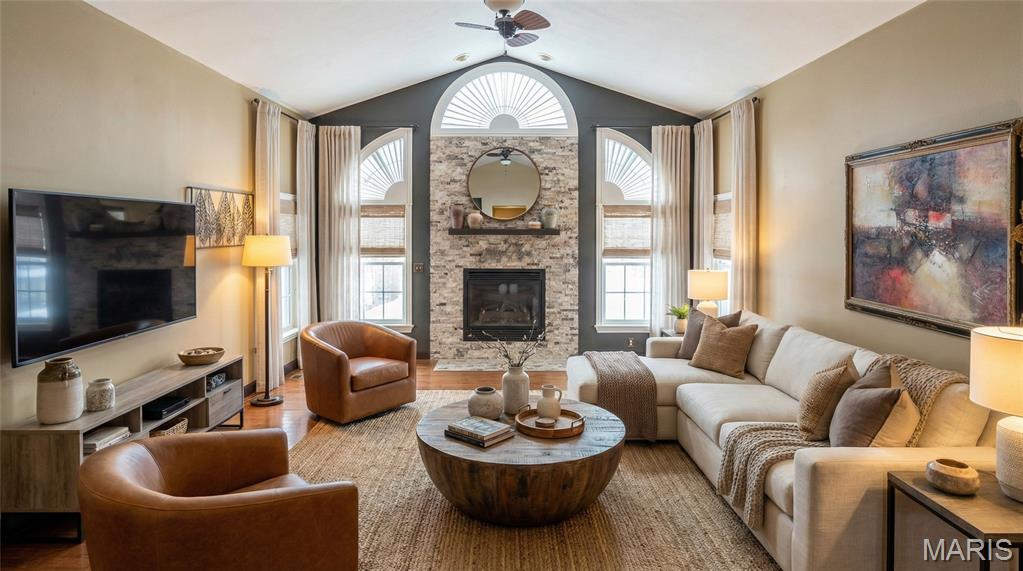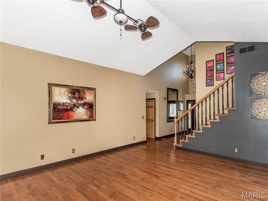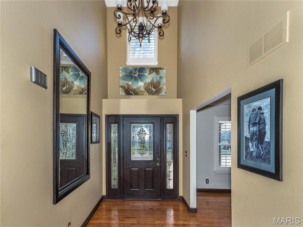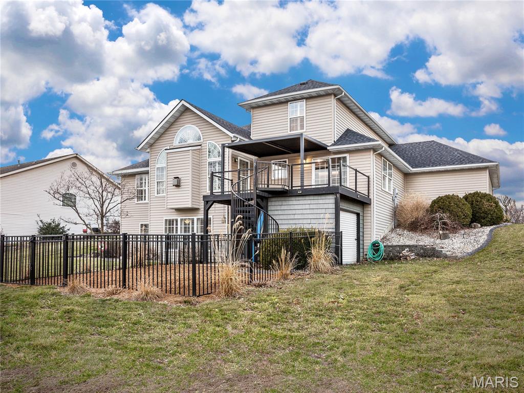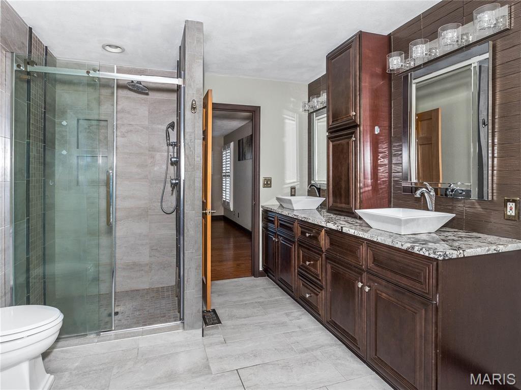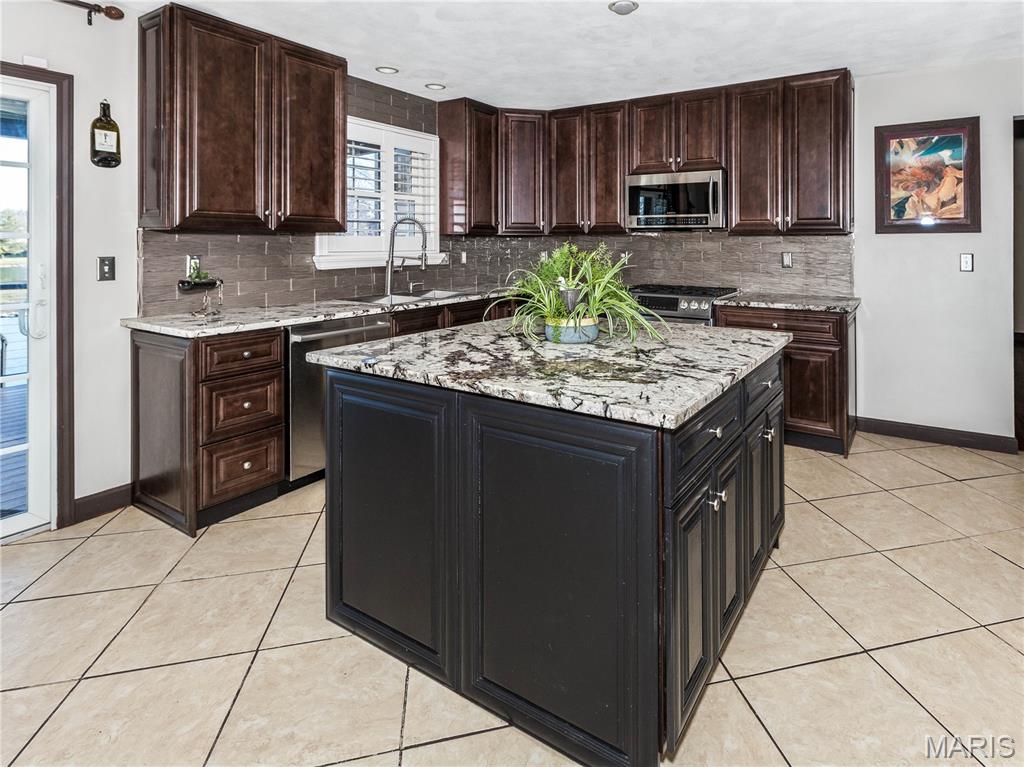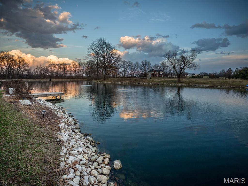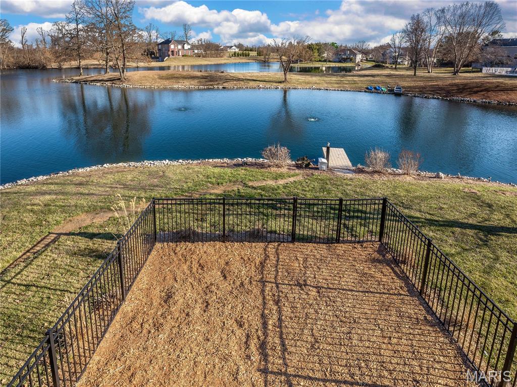 Unforgettable panoramic lake views await in this 1.5 story, 5-bedroom, 3.5-bath walk-out home, perfectly situated on a quiet cul-de-sac. And you get all of this on a beautifully positioned 0.4 acre lot. The gourmet kitchen features a "Bosch" appliance package to include the double refrigerator, granite countertops, glass tile backsplash, and a large center island—all positioned to capture breathtaking lake views while cooking or entertaining. A formal dining room is conveniently located just off the kitchen. The living room showcases hardwood floors and a beautiful stone gas fireplace, creating a warm and inviting space. The MAIN FLOOR PRIMARY SUITE offers a newly updated spa-like bathroom with a walk-in shower and freestanding jetted tub. Laundry is located on the main floor. Upstairs you’ll find three additional bedrooms and a full bath. The finished lower walk-out level features a large family room—designed for family fun, relaxation, and entertaining of every kind, easy access to the lake, plus a spacious bedroom and full bath AND plenty of unfinished storage space. Major updates include New roof, AC, and tankless water heater (2025) Completely finished garage with tiled floors, cabinetry and new garage door doors, Sub-electrical panel in the garage, ideal for electric vehicles and power tools. Step outside and discover the true showstopper — the lake in your own backyard. Enjoy breathtaking sunrise views from the covered 18' x 12' composite deck featuring a new louvered sunshade, relax by the water or fish from the new dock. A paddle boat is even included for enjoying peaceful days on the lake. A full list of additional updates is available. If you’ve been searching for pristine lake-style living close to town, restaurants, shopping, and major amenities — this is the one!