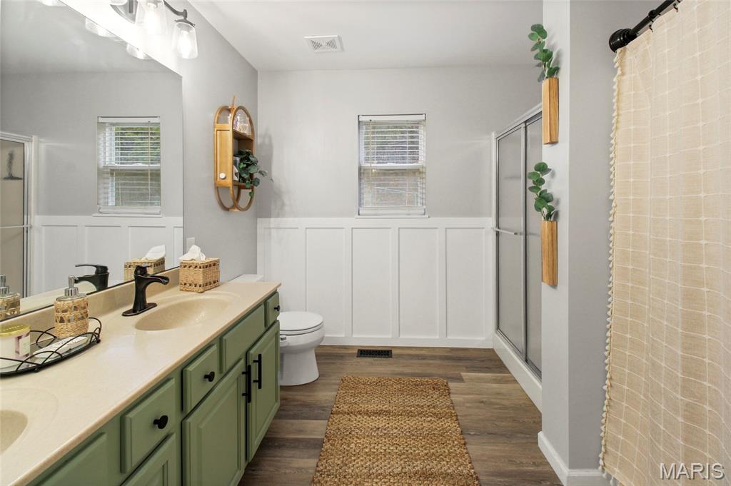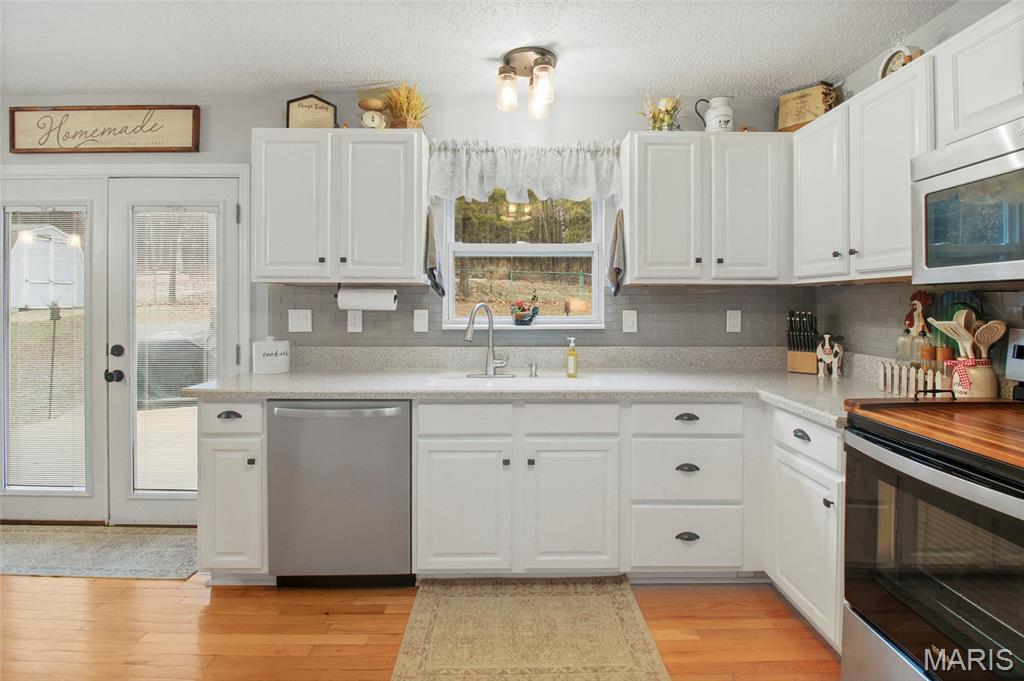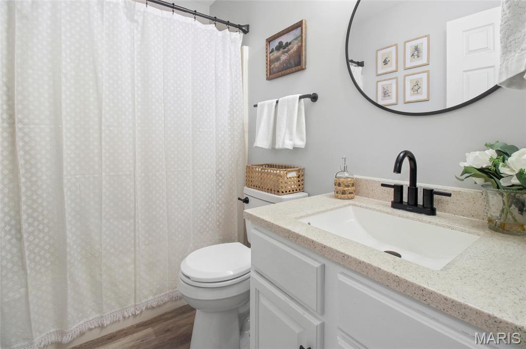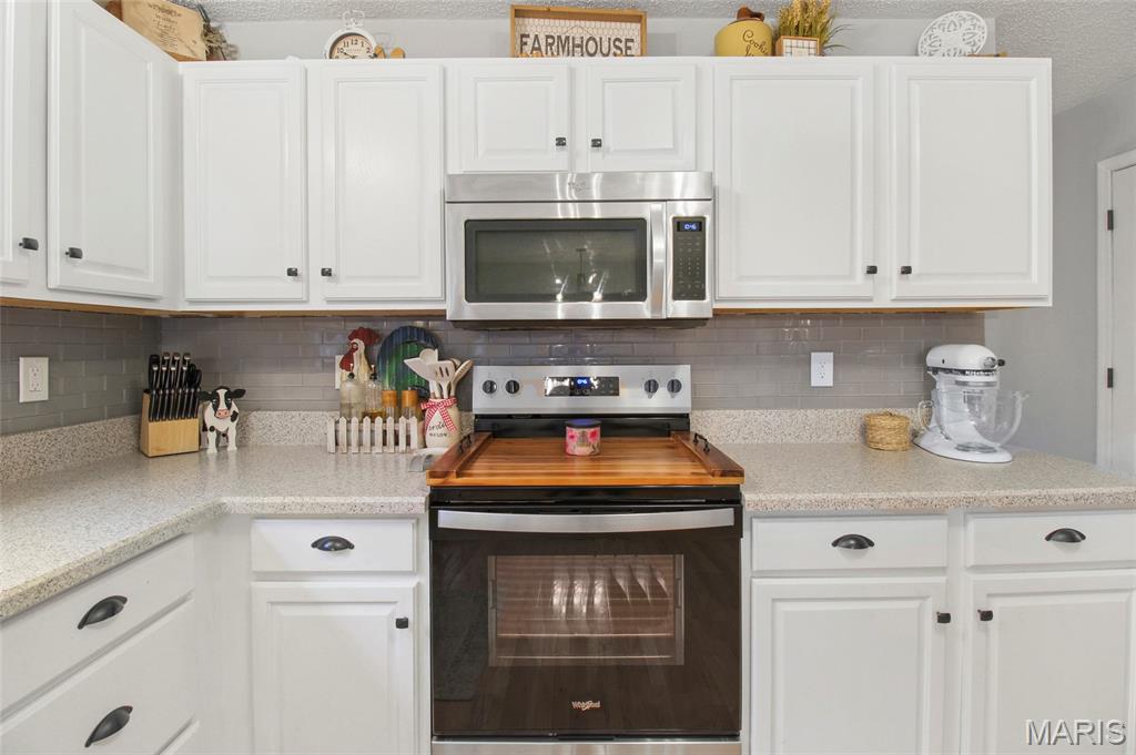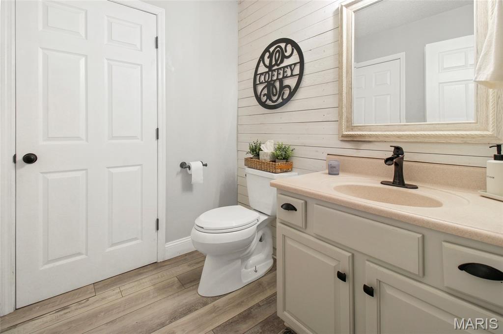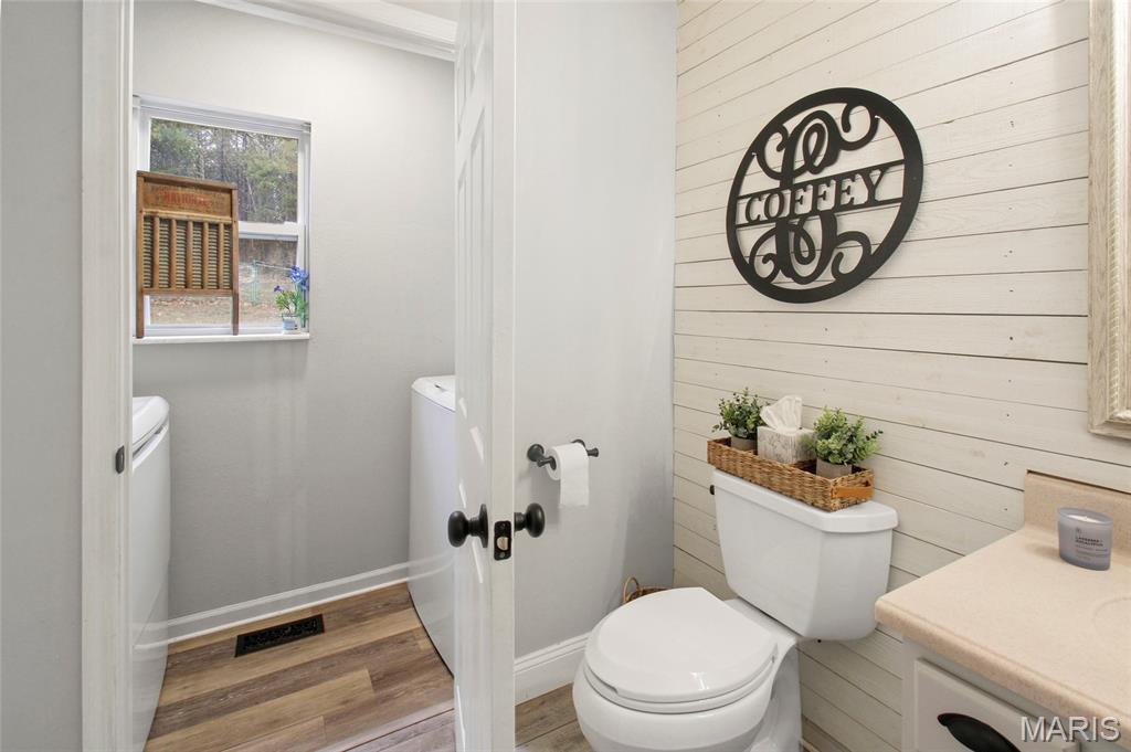 Nestled on over 2 wooded acres, this 3 bedroom, 4 bath, 1.5 story home offers privacy, usable land, and a finished walkout basement. Step in from the covered front porch to a spacious living room that leads to the eat in kitchen with solid surface countertops, a new stove (2026), and refrigerator that stays. French doors open to the fenced backyard and patio with wooded views and added privacy. The main floor primary suite features a private bath with dual sinks, tub, and separate shower. A guest half bath and main floor laundry complete the main level. Upstairs includes two generously sized bedrooms, a full bath, and accessible attic storage. The finished walkout basement adds valuable living space with a large family and recreation area, bonus room ideal for a fourth bedroom or home office, an additional half bath, and a dedicated storage room. Major updates include a brand new roof (2026), septic system (2023), water softener system (2023), and updated attic insulation (2024). Outside you will find an attached two car garage, additional parking, and a shed for storage. With over 2 acres, there is room for a future pool, outbuilding, garden, or expanded outdoor living space. Properties offering acreage, a main floor primary suite, and a finished walkout lower level in this area are limited. Schedule your showing today.