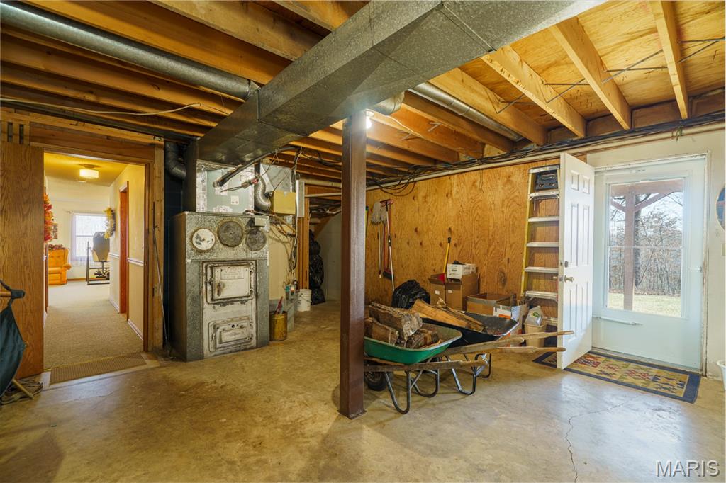 One owner home tucked away in the woods! Well maintained and loved ranch home on a full partially finished walkout basement on over 40 acres. Winding drive through the trees welcomes you. Covered front porch. Formal living room, formal dining room, kitchen has lots of cabinets plus pantry cabinets and big enough for a table, huge laundry room also with lots of cabinets, family room and 3 bedrooms, 2 full baths all on the main level. Master bedroom has it's own private bath. Lower level has a family room with tons of windows for natural light, a 4th bedroom, a 3rd full bath and a large unfinished area for workshop, storage, kitchenette, etc plus a cellar type room great for storm shelter. This is a well built home with 6" walls, Victor wood furnace with wood to get you started for next winter, whole house humidifier all helping to keep the utility costs low! New roof! Large deck at the back of the house overlooks the back yard and the garden area. Over 40 acres of mostly trees is great for privacy and hunting! Plus a creek!! This is a great property at the end of a cul-de-sac with just a few neighbors.