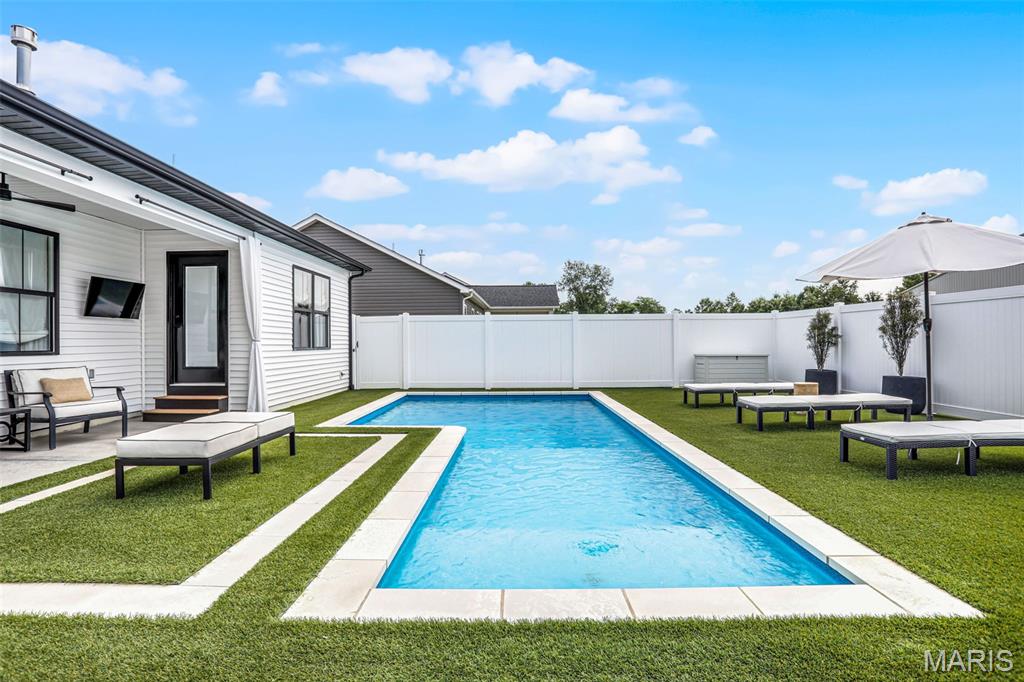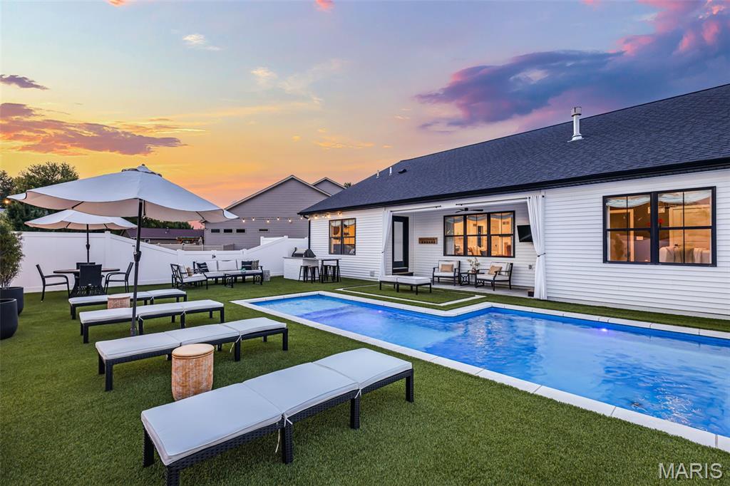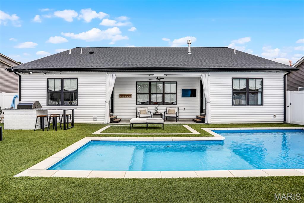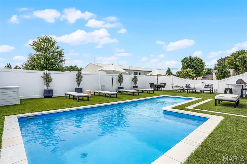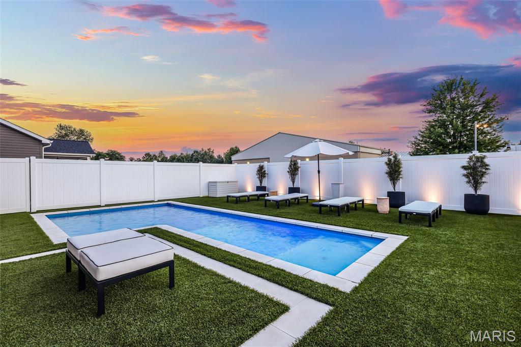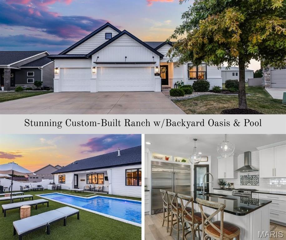 Welcome home to this stunning, custom, one-owner ranch featuring upgrades throughout! This 4 bedroom, 3 1/2 bath home offers a well-planned, functional floorplan ideal for both everyday living & entertaining! Main floor has an open floor plan with a chef's delight kitchen w/high-end stainless appliances including commercial-sized refrigerator & freezer; pot filler over stove, granite countertops, tile backsplash, soft close cabinetry, large walk-in custom pantry w/built-in microwave & large island. Kitchen is open to spacious dining room & living room w/gas fireplace & built-ins. All living areas on the main floor feature beautiful engineered hardwood flooring. Primary suite boasts 8x7 custom walk-in closet, spa-like bath w/tile shower & door to access backyard & pool area. The second bedroom on the main floor is currently being used as an office & could also be used as a second primary suite w/walk-in closet, private full bath & built-ins. Separate laundry room w/cabinets, 1/2 bath and drop zone complete the first floor. Fabulously finished lower level has bedrooms 3 & 4 w/egress windows, 3rd full bath, large family room, wet bar area w/refrigerator staying, work zone area w/cabinetry, built-ins, decorative walls & additional storage. The backyard is your own oasis featuring an L-shaped saltwater pool that starts w/1' deep sun ledge, steps down to a 4' hangout area & 8' deep plunge area. Maintenance free trex steps & synthetic turf make relaxing easy! The built-in grill w/dedicated gas line & bar area w/granite countertops are perfect for entertaining family & friends! All pool supplies and outdoor furniture to stay. This conveniently located home has direct neighborhood access to MCT bike trails & close to schools, shopping, restaurants, etc. This is truly a one-of-a-kind meticulously maintained property! Sellers are downsizing and outside furniture and other furniture items are negotiable. Ask your favorite realtor for a copy of the feature sheet and to schedule your own private showing today! Showings will start Saturday, April 11.