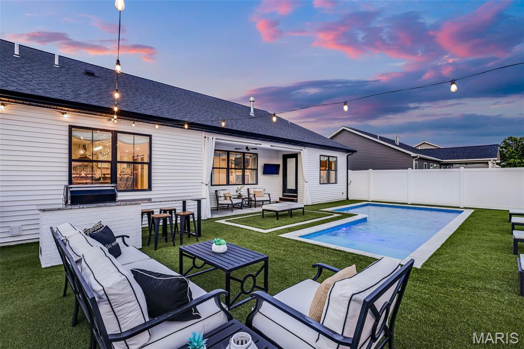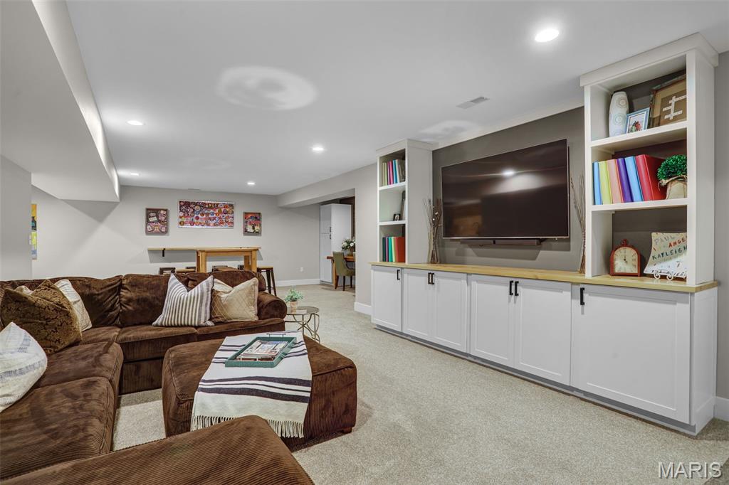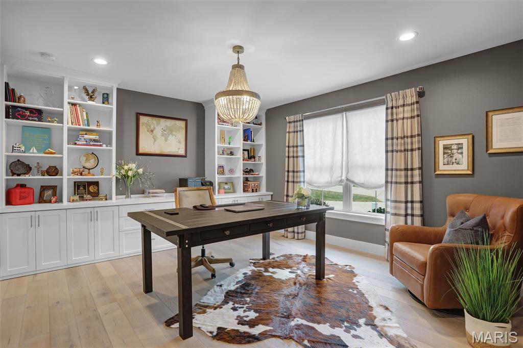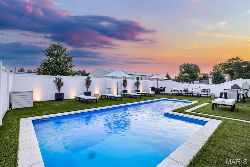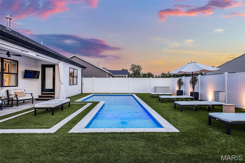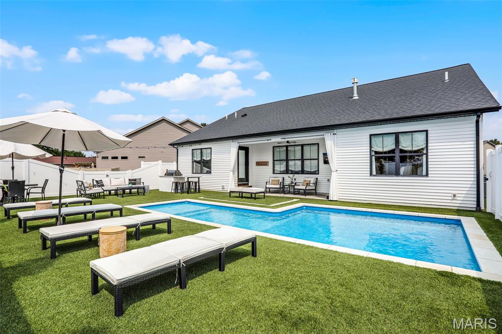 Welcome home to this stunning, custom, one-owner ranch featuring upgrades throughout! This 4 bedroom, 3 1/2 bath home offers a well-planned, functional floorplan ideal for both everyday living & entertaining! Main floor has an open floor plan with a chef's delight kitchen w/high-end stainless appliances including commercial-sized refrigerator & freezer; pot filler over stove, granite countertops, tile backsplash, soft close cabinetry, large walk-in custom pantry w/built-in microwave & large island. Kitchen is open to spacious dining room & living room w/gas fireplace & built-ins. All living areas on the main floor feature beautiful engineered hardwood flooring. Primary suite boasts 8x7 custom walk-in closet, spa-like bath w/tile shower & door to access backyard & pool area. The second bedroom on the main floor is currently being used as an office & could also be used as a second primary suite w/walk-in closet, private full bath & built-ins. Separate laundry room w/cabinets, 1/2 bath and drop zone complete the first floor. Fabulously finished lower level has bedrooms 3 & 4 w/egress windows, 3rd full bath, large family room, wet bar area w/refrigerator staying, work zone area w/cabinetry, built-ins, decorative walls & additional storage. The backyard is your own oasis featuring an L-shaped saltwater pool that starts w/1' deep sun ledge, steps down to a 4' hangout area & 8' deep plunge area. Maintenance free trex steps & synthetic turf make relaxing easy! The built-in grill w/dedicated gas line & bar area w/granite countertops are perfect for entertaining family & friends! All pool supplies and outdoor furniture to stay. This conveniently located home has direct neighborhood access to MCT bike trails & close to schools, shopping, restaurants, etc. This is truly a one-of-a-kind meticulously maintained property! Sellers are downsizing and outside furniture and other furniture items are negotiable. Ask your favorite realtor for a copy of the feature sheet and to schedule your own private showing today! Showings will start Saturday, April 11.