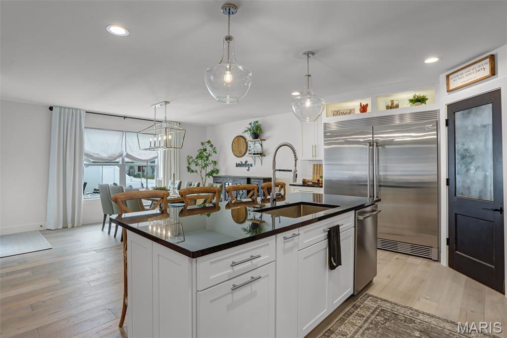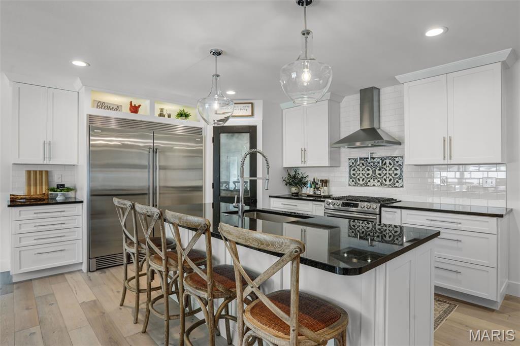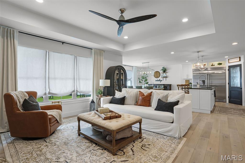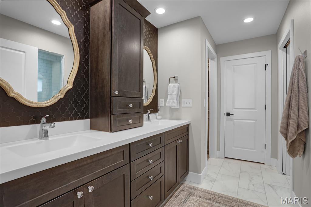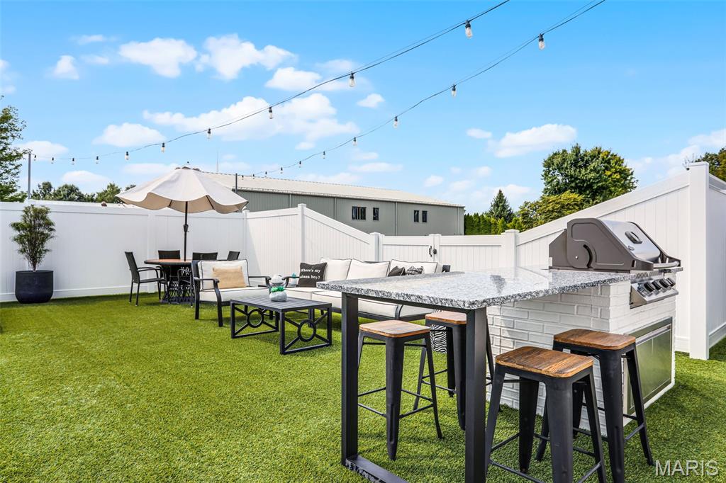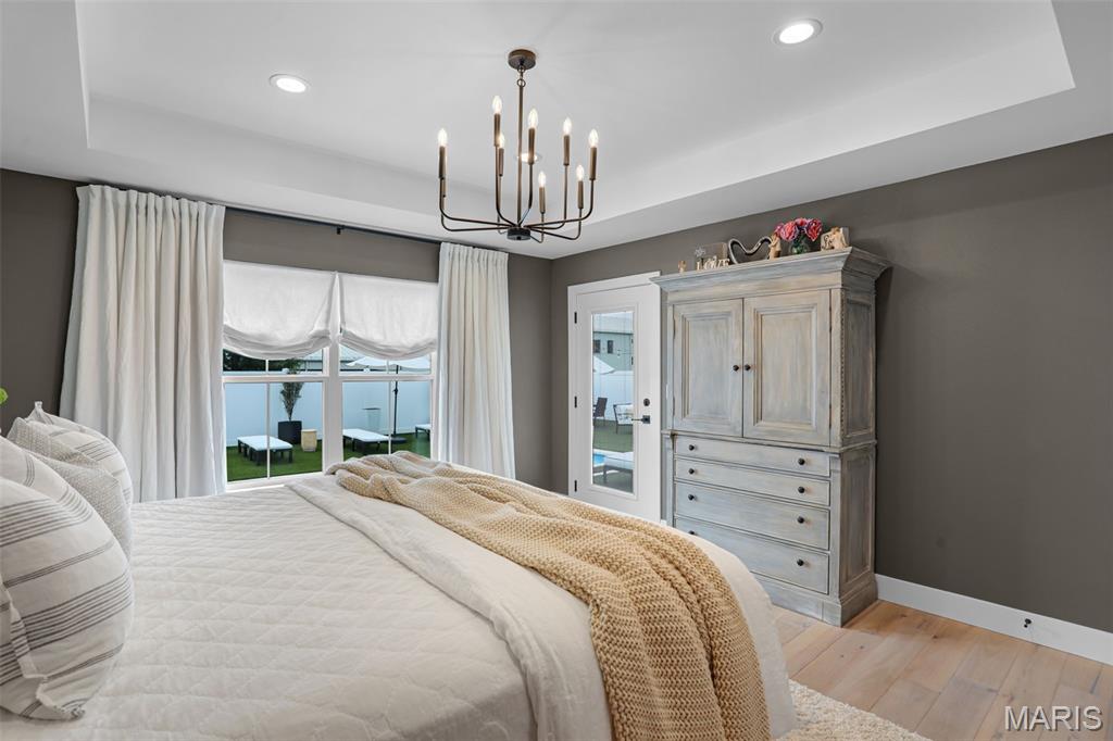 Welcome home to this stunning, custom, one-owner ranch featuring upgrades throughout! This 4 bedroom, 3 1/2 bath home offers a well-planned, functional floorplan ideal for both everyday living & entertaining! Main floor has an open floor plan with a chef's delight kitchen w/high-end stainless appliances including commercial-sized refrigerator & freezer; pot filler over stove, granite countertops, tile backsplash, soft close cabinetry, large walk-in custom pantry w/built-in microwave & large island. Kitchen is open to spacious dining room & living room w/gas fireplace & built-ins. All living areas on the main floor feature beautiful engineered hardwood flooring. Primary suite boasts 8x7 custom walk-in closet, spa-like bath w/tile shower & door to access backyard & pool area. The second bedroom on the main floor is currently being used as an office & could also be used as a second primary suite w/walk-in closet, private full bath & built-ins. Separate laundry room w/cabinets, 1/2 bath and drop zone complete the first floor. Fabulously finished lower level has bedrooms 3 & 4 w/egress windows, 3rd full bath, large family room, wet bar area w/refrigerator staying, work zone area w/cabinetry, built-ins, decorative walls & additional storage. The backyard is your own oasis featuring an L-shaped saltwater pool that starts w/1' deep sun ledge, steps down to a 4' hangout area & 8' deep plunge area. Maintenance free trex steps & synthetic turf make relaxing easy! The built-in grill w/dedicated gas line & bar area w/granite countertops are perfect for entertaining family & friends! All pool supplies and outdoor furniture to stay. This conveniently located home has direct neighborhood access to MCT bike trails & close to schools, shopping, restaurants, etc. This is truly a one-of-a-kind meticulously maintained property! Sellers are downsizing and outside furniture and other furniture items are negotiable. Ask your favorite realtor for a copy of the feature sheet and to schedule your own private showing today! Showings will start Saturday, April 11.