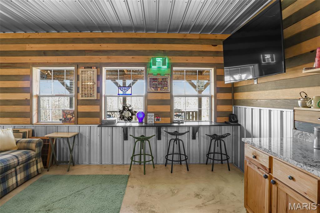 If you've been dreaming of the Ultimate Lake Experience, your dream just came true at 35 Cozart Cove! Custom built in 2024, this 1400 square foot Lake Home is perched high above Lake Wappapello, offering breathtaking views and endless outdoor recreational bliss in every direction. A ten foot wide, wrap-around porch provides the perfect place for socializing, cook-outs, celebrations, or just peaceful relaxation. The rustic interior comes fully furnished, complete with high-end finishes like granite countertops, stainless appliances, upscale barstools, custom cabinetry, beautiful flooring that is easy to maintain, a luxuriously spacious bathroom, separate laundry space, large bedrooms with custom-built rustic furniture, a climate controlled environment - lots of attention to detail, comfort, efficiency, and relaxation! With a private road maintained by the Corps of Engineers, you can easily drive down to the Boat Slips, one of which you as the new owner would share with another resident. Once there, literally cast your cares out onto the water, and begin making memories so precious that you'll never want to leave!