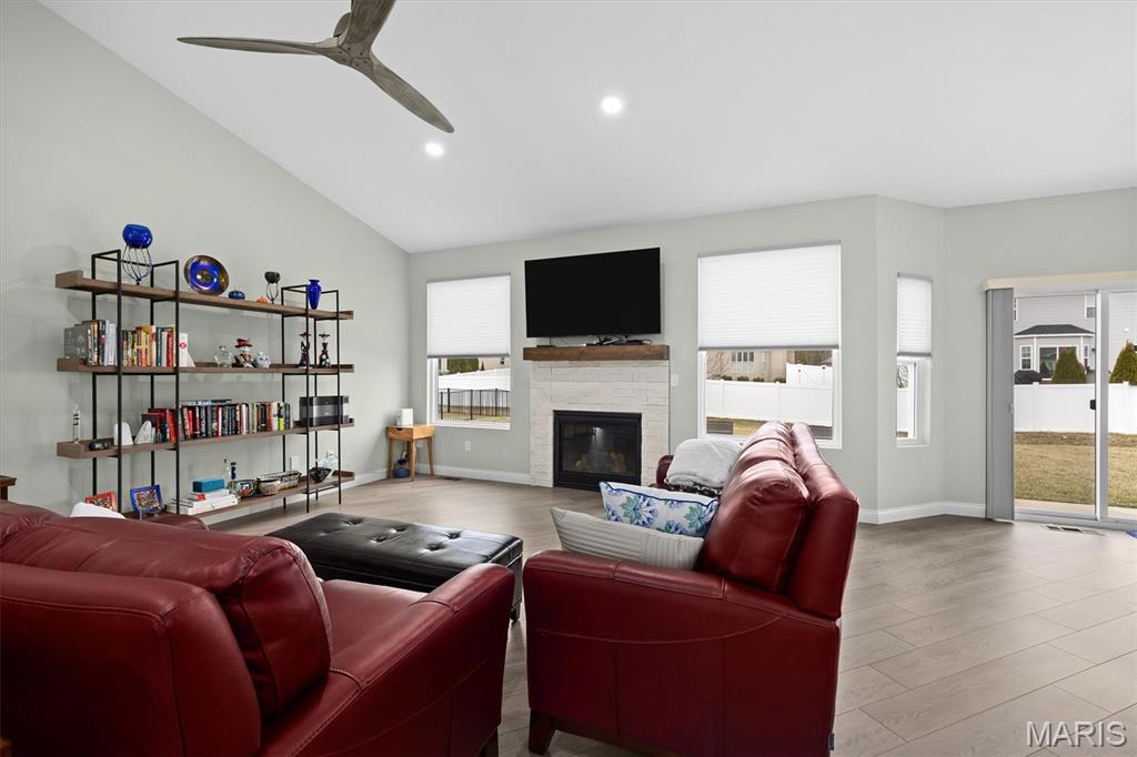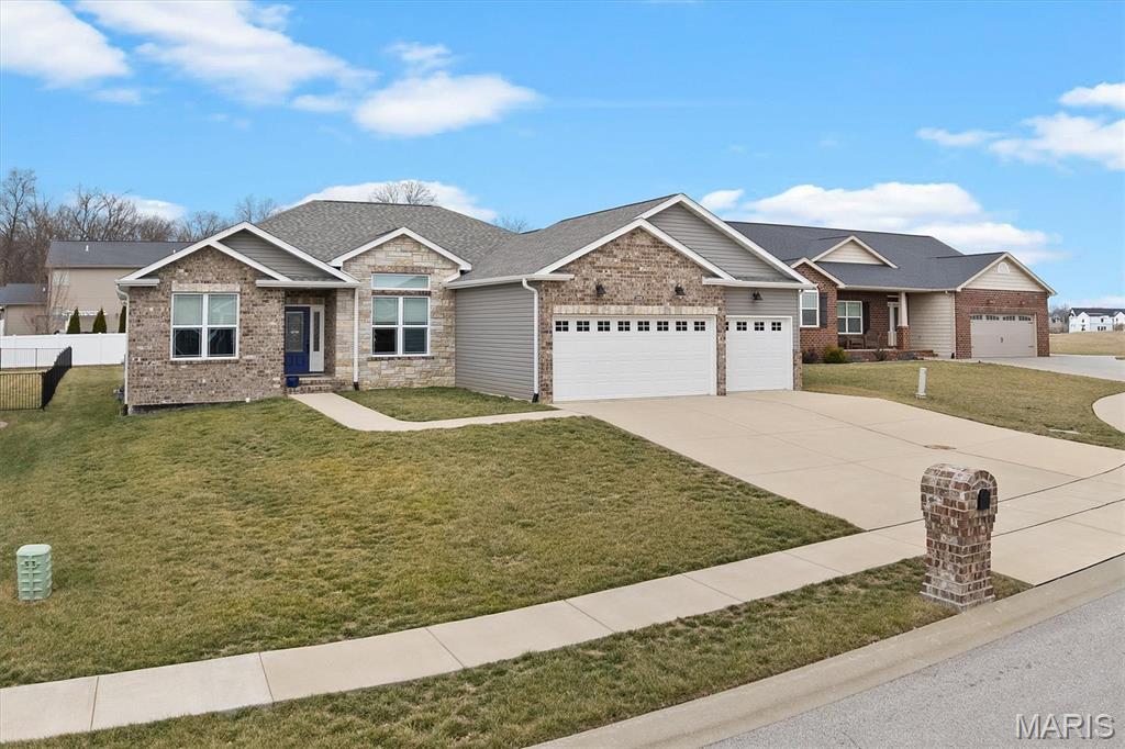 A bright and welcoming good as new Ranch Home in one of O'Fallon's sought after neighborhoods. From the vaulted ceilings in the living room to the quartz counter tops in the kitchen, this home has many upgraded features. The main living areas have diagonally installed LVP flooring and all windows have custom Hunter Douglas blinds. The 3 main level bedrooms are all generous sizes with a split bedroom floorplan. The lower level has the fourth bedroom, another full bath and a family room with an abundance of space to spread out. For those sunny, warm days the back patio has been extended with space to accommodate grilling, dining and relaxing. This home is close to restaurants, shopping, schools, Interstate 64 and Scott AFB. Check it out today and make this your next home.