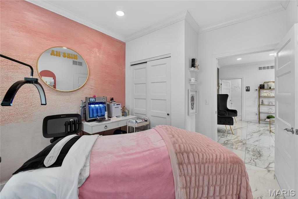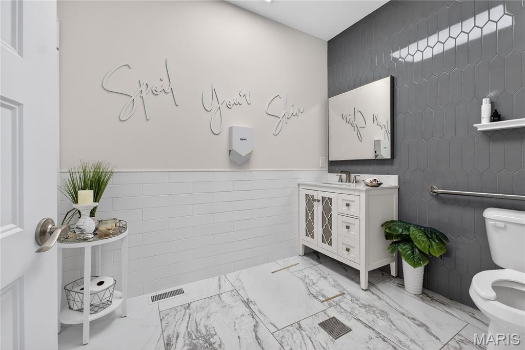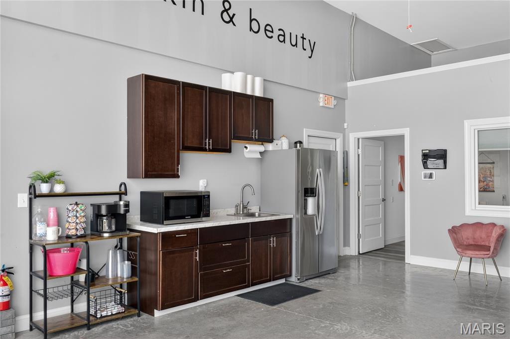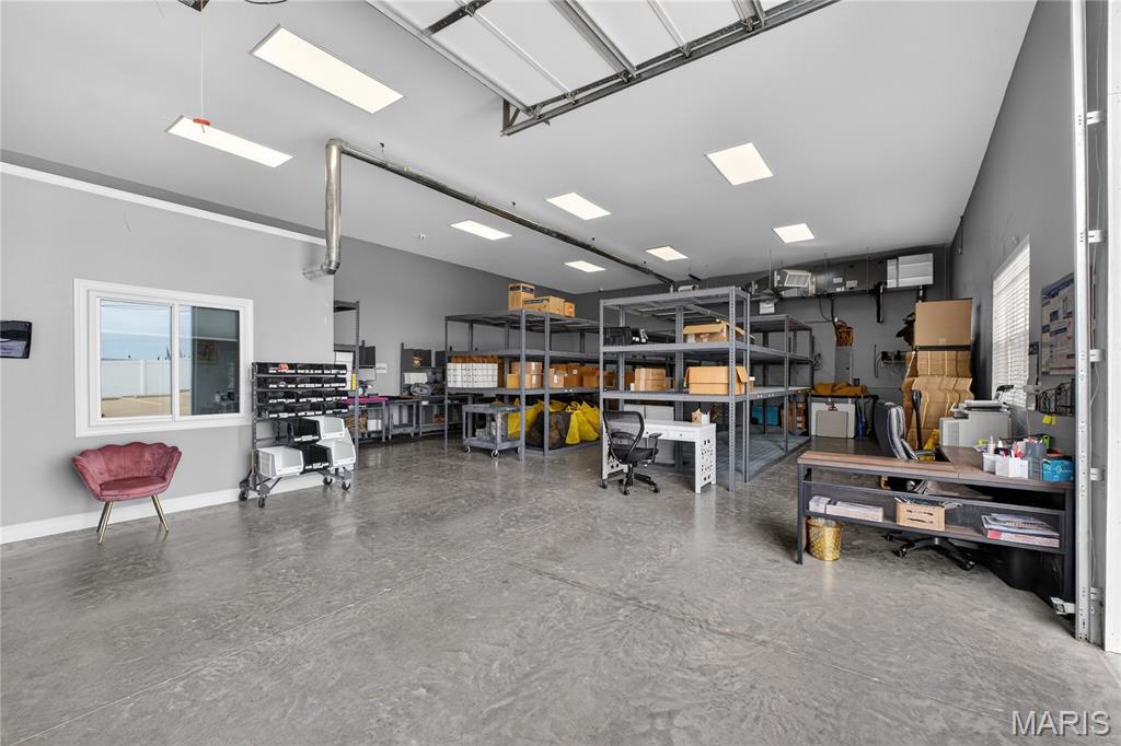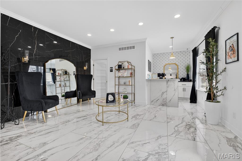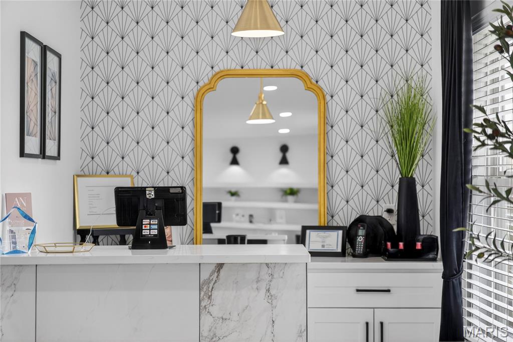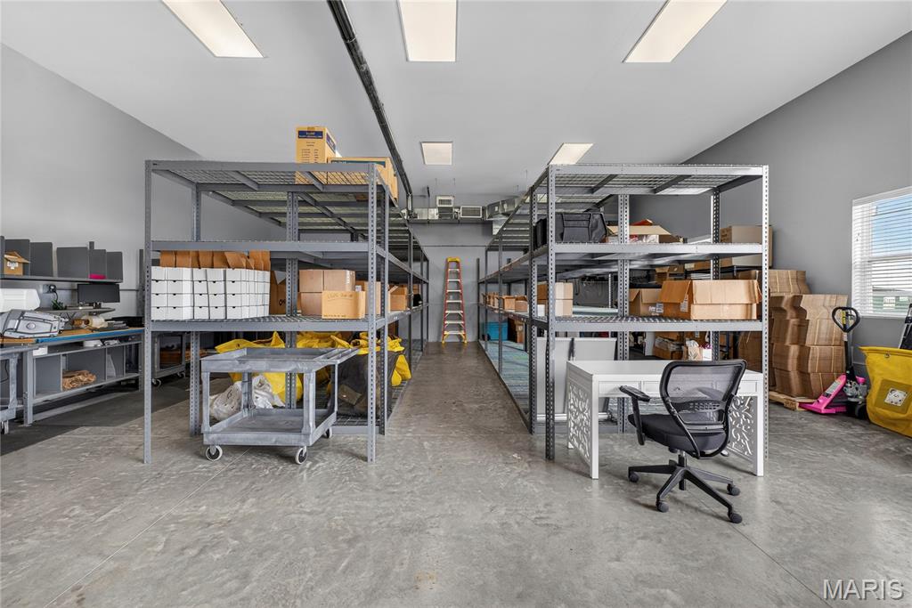 Strategic commercial opportunity featuring recent capital improvements and a flexible multi-use configuration in a high visibility corridor with approximately 24,205 vehicles per day. Designed for adaptability and long term value, this updated mixed use property blends professional front office presentation with functional warehouse capacity, ideal for owner-users or investors seeking a versatile commercial space. The renovated 34x20 lobby (2022) creates a polished, client-facing environment with custom tile flooring, quartz peninsula reception counter, soft-close cabinetry, tile accent wall, crown molding, and layered recessed, pendant, and sconce lighting. The main level also includes a private office with mini-split HVAC, a dedicated training room, and an ADA-compliant restroom with direct warehouse access, allowing seamless integration between customer-facing operations and back-of-house functionality. The 49x34 (1,666 SF) warehouse features concrete flooring, 12x12 overhead door, built-in shelving (to remain), custom cabinetry, laminate workspace, single basin sink, and recessed lighting. The layout supports a variety of potential uses including contractor operations, distribution, logistics, fulfillment, trade services, showroom with storage, specialty retail with warehouse component, light manufacturing, or hybrid office/industrial configuration (subject to zoning). The lower level expands usability with a 20x19 finished space completed in 2023, ideal for additional office, training, production, or specialty service use, plus an unfinished storage area with utility sink. Significant capital improvements reduce near-term expense, including lobby renovation (2022), additional office build-out (2022), HVAC replacement (2022), basement finishing (2023), new roof (2025), upgraded 200-amp electrical panel, 2021 concrete improvements, and electric water heater (2018). Positioned within an established service-oriented commercial corridor supported by strong surrounding demographics, this property offers immediate usability and long-term growth potential for businesses or investors seeking flexibility, visibility, and value.