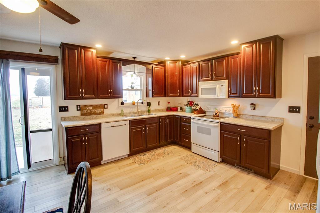 Welcome home to this charming and well-maintained property offering comfort, convenience, and plenty of functional space—inside and out. This 3 bed/2 bath home features a spacious living room with vinyl plank flooring that flows seamlessly into the eat-in kitchen. The kitchen is well-equipped with an electric stove, microwave, dishwasher, refrigerator, and disposal, along with a pantry for added storage. Step outside to enjoy the concrete patio—ideal for grilling, entertaining, or relaxing in your fully fenced backyard. A large shed provides excellent additional storage for tools, lawn equipment, or hobbies. Solar panels are owned and paid in full. This home combines practical features with welcoming spaces—ready for you to move in and make it your own!
