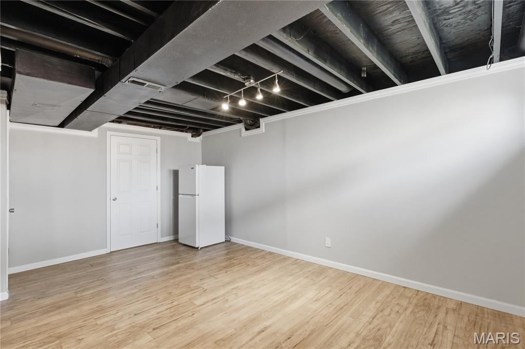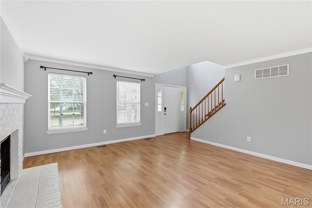 In the HEART OF VALLEY PARK, this spacious 2-story is ready for your finishing touches, located in a QUIET CUL DE SAC on one of the largest lots in the subdivision. Elegant curb appeal with brick detail, vinyl siding, grid windows, COVERED ENTRY with full-glass storm door. Bright soaring 2-STORY ENTRY FOYER opens to living room with BRICK FIREPLACE and easy-care laminate flooring. Open FORMAL DINING room for entertaining. Eat-in kitchen with generous cabinets, STAINLESS appliances, smooth-top stove, microwave hood, pantry and durable ceramic tile flooring. Sliding door to patio overlooking large FENCED BACKYARD - ideal for outdoor gatherings. Upstairs VAULTED PRIMARY SUITE with WALK-IN CLOSET, glass door step-in shower. Secondary bedrooms share hall bath with tub/shower combo. Downstairs finished with FLEXIBLE REC ROOM, water-resistant luxury vinyl plank flooring, generous storage and laundry hookups. Residents enjoy 3+ acres community COMMON GROUND and proximity to 35-acre VANCE TRAIL PARK (playground, trails, creek) and 275-acre BUDER PARK (playground, trails, Meramec River, archery, sports and more). SUPER CONVENIENT location with most errands within a mile.