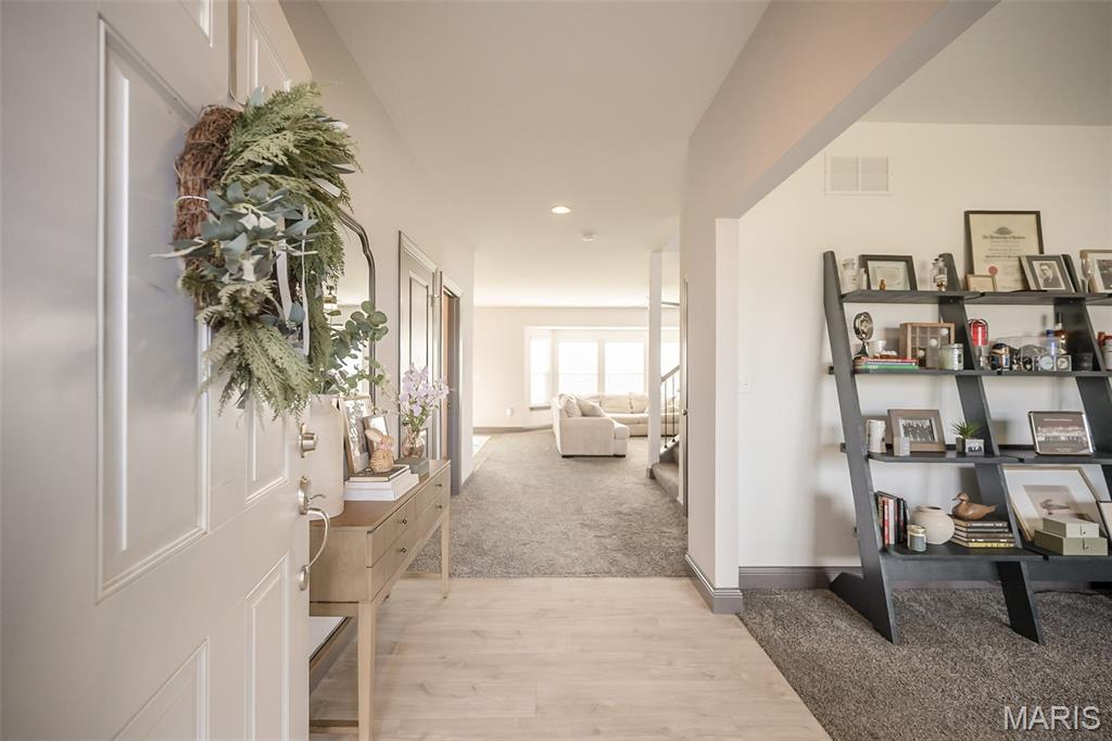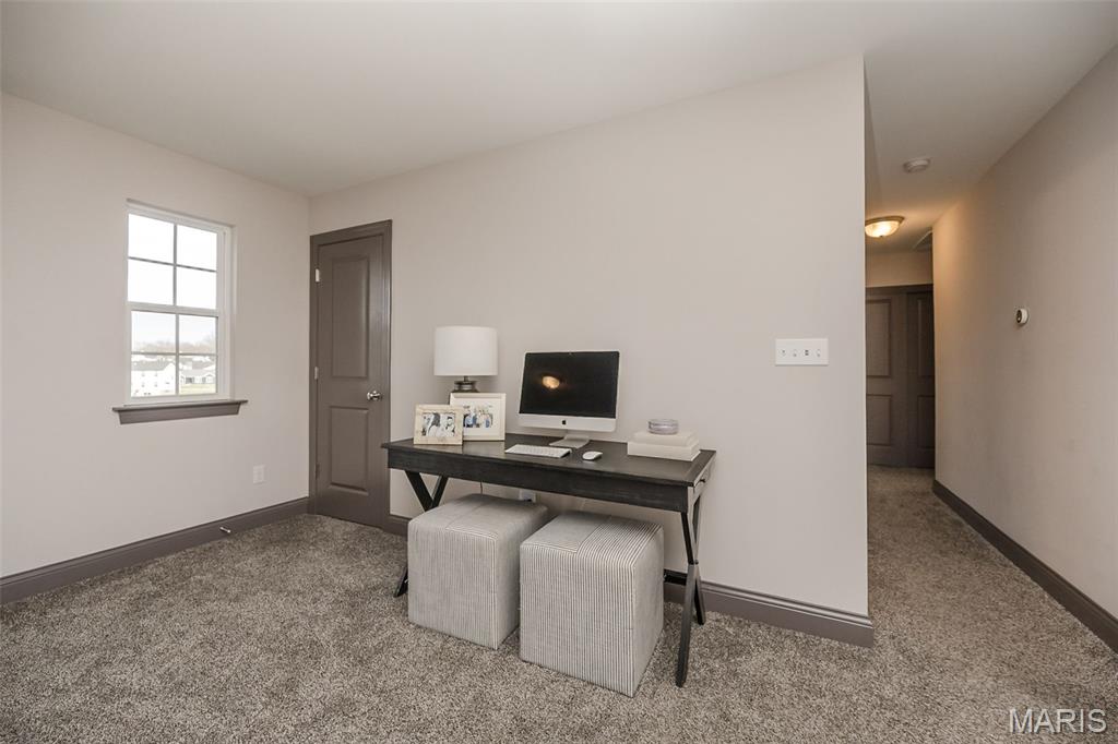 Welcome to this beautifully upgraded 5-year-new two-story home, situated on one of the largest lots in the subdivision, offering over 2,500 sq. ft. of living space, 3 bedrooms, 2.5 baths, and a 3-car garage. The main floor features an open-concept layout where the great room, highlighted by a stunning 5-bay window, flows seamlessly into the kitchen—perfect for everyday living and entertaining. The upgraded kitchen boasts recessed lighting, 42" cabinets with soft-close drawers, a 7' center island, granite countertops, stainless steel appliances, gas range, and a walk-in pantry. A versatile flex room off the entry provides the ideal space for a home office or den. Upstairs you’ll find a relaxing owner’s suite with a tray ceiling and a luxury bath, along with a functional loft area and additional bedrooms, each with spacious walk-in closets. The great room and all bedrooms are braced and wired for ceiling fans. Additional features include a dual-zone HVAC system, wood-burning fireplace, 9' ceilings, whole-home water softener, 3/4 bath rough-in at the lower level, 12x12 patio, and a fully fenced backyard. Enjoy the benefits of newer construction without the wait—this home is move-in ready and waiting for you!