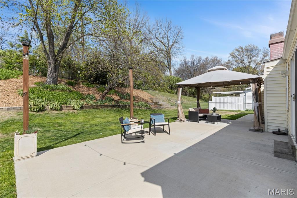 Stunning RENOVATED ranch with reworked open floor plan, FINISHED LOWER LEVEL and large fenced backyard, near 46-acre Schroeder Park (pool, trails, sports, amphitheater and more). Great curb appeal with COVERED FRONT PORCH, brick detail, vinyl siding and professional landscaping. Architectural shingle roof, coach lights, enclosed soffit/fascia, full-glass front storm door and UPSCALE PELLA WINDOWS (some with built-in blinds). Entry opens to living room with GLEAMING HARDWOOD and bright bay window. Formal dining room with BRICK FIREPLACE, open to kitchen - perfect for gatherings. INCREDIBLE LUXURY KITCHEN with custom glazed raised-panel cabinets, soft-close, crown, QUARTZ COUNTERS, upscale appliances with 5-burner gas stove, double oven, and durable ceramic tile flooring. Sliding door steps out to newer OVERSIZED PATIO with pergola overlooking peaceful backyard - ideal for entertaining. Relaxing primary suite with board and batten accent wall, DUAL CLOSETS, step-in glass shower with easy-clean surround and adult-height toilet. 2nd bedroom showcases a bay window and dual closets. Secondary bedrooms share hall bath with tub/shower combo. Recessed lights and 6-panel interior doors throughout. Downstairs FLEXIBLE REC ROOM, laundry area and tons of storage. FENCED BACKYARD backs to trees with generous space to garden and play. Easy access to Highways 141/100 in AWARD-WINNING SCHOOL DISTRICT - walking distance to elementary and high schools.