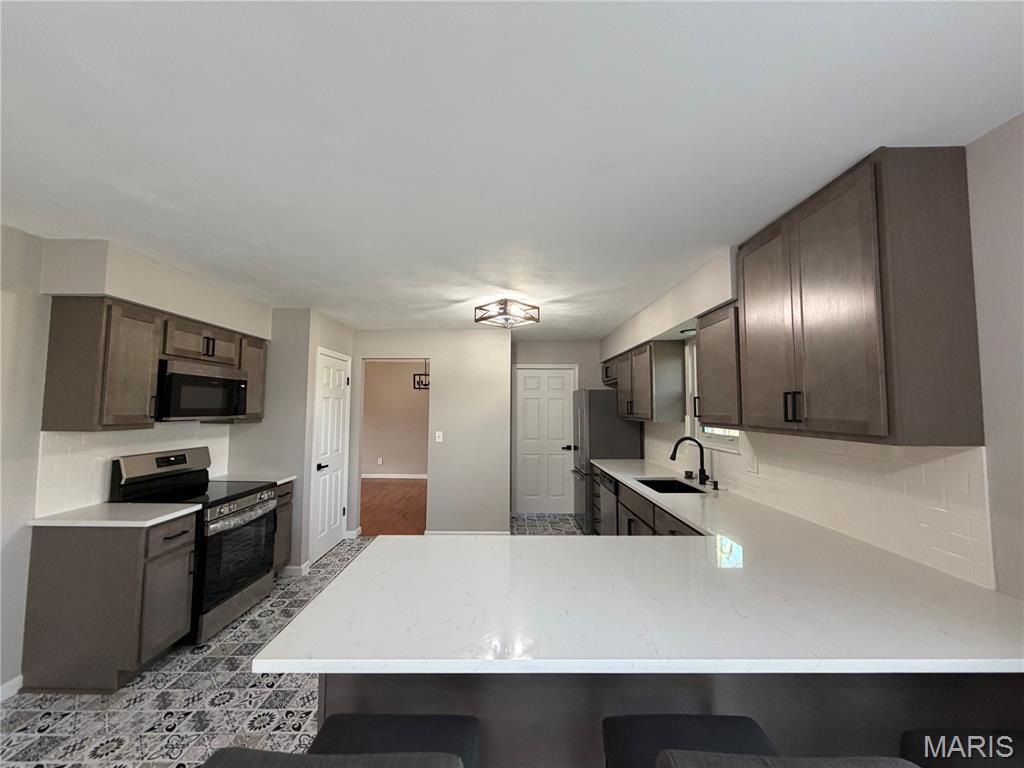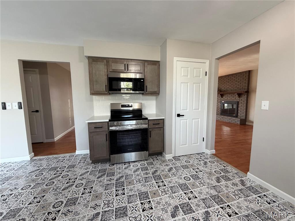 Renovation Alert: Stunning All-Brick Home with Modern Farmhouse Flair! This bright & open gem has been completely updated to offer the perfect blend of modern style and functionality. Step inside to find an incredible bright and open kitchen designed for families or entertaining. It features crisp new cabinets, elegant quartz countertops, a stylish new backsplash, and a full suite of new stainless steel appliances. The designer touch continues with farm house lighting and new luxury vinyl flooring. A generous-sized, modern primary bedroom has a spa-like ensuite features including a double vanity and whirlpool tub. The additional two bedrooms offer the cozy comfort of new carpet and generously sized closets; they share a renovated bathroom with double sink vanity. The living room has a wood burning fireplace with original hardwood floors flowing openly to the dining room. A Dedicated laundry area includes a new washer and dryer set and plenty of storage. Major Upgrades (Peace of Mind): New Roof, New Furnace, New AC, New Water Heater, New Insulated Garage Door, New Gutters, Soffit, and Fascia!. Enjoy the Outdoor Living with a Huge, fully fenced backyard, perfect for entertaining, pets, or outdoor activities. Convenient Location; This charming all-brick home in the heart Fairview Heights offers a perfect blend of classic exterior appeal and modern updates, situated on a quiet cul-de-sac. Enjoy unparalleled convenience to shopping, dining, and entertainment, combining peaceful living with easy access to amenities—an opportunity not to be missed. Home has been city inspected, is compliant and ready for occupancy permit. Agent interest.