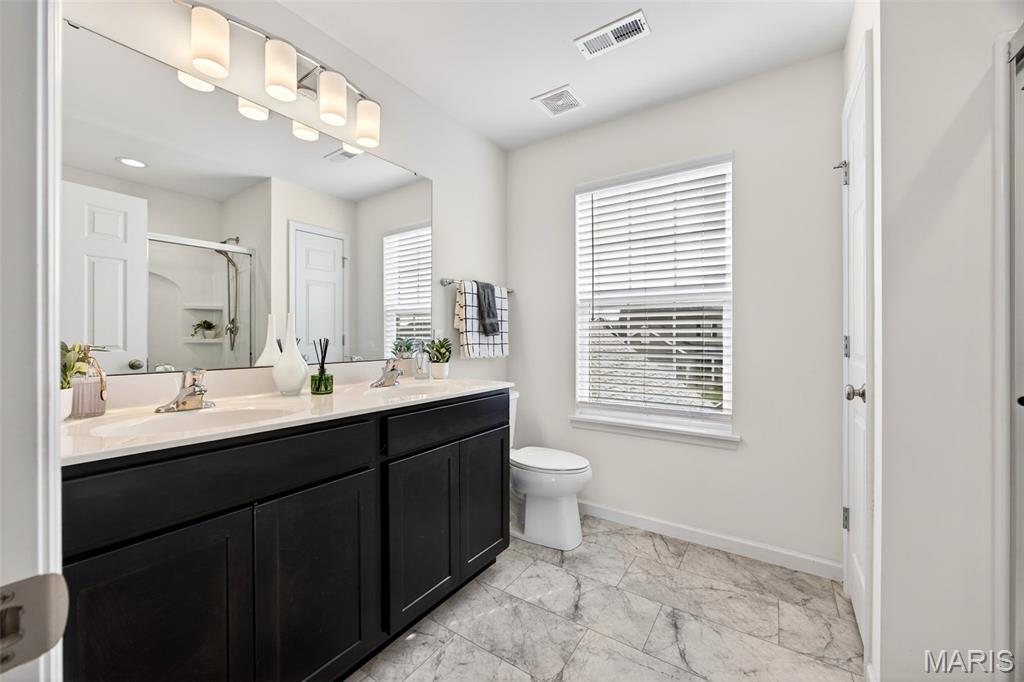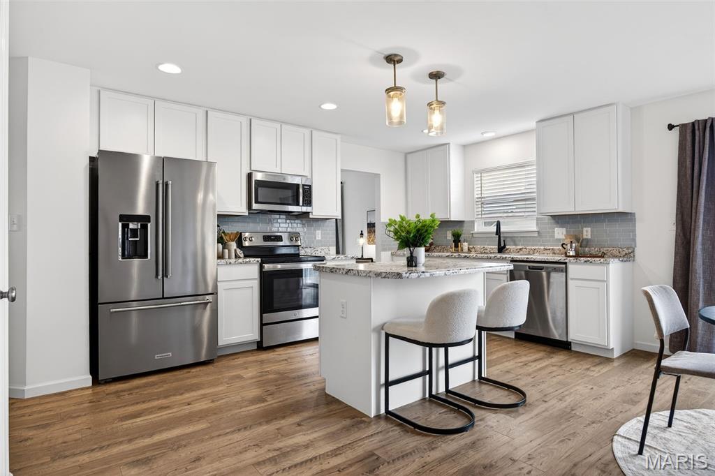 Why wait to build when you can have it all right now? This almost-new, beautifully designed 3-bedroom, 3-bath home offers modern comfort, upscale finishes, and move-in-ready convenience. Step inside to luxury vinyl plank flooring, fresh neutral paint, and stylish modern light fixtures throughout. The updated kitchen is a true showstopper, featuring custom cabinetry, a designer backsplash, stainless steel appliances, and a spacious center island—perfect for gathering and entertaining. A bright breakfast room overlooks the large, level backyard, ideal for outdoor living. Upstairs, you’ll find three generous bedrooms, including a stunning primary suite with a luxurious bath and walk-in closet. Enjoy the convenience of second-floor laundry, while the unfinished lower level offers endless possibilities for future living space. Complete with a welcoming front porch, attached two-car garage, and a spacious yard, this home blends style, space, and functionality—ready for you to make it your own.