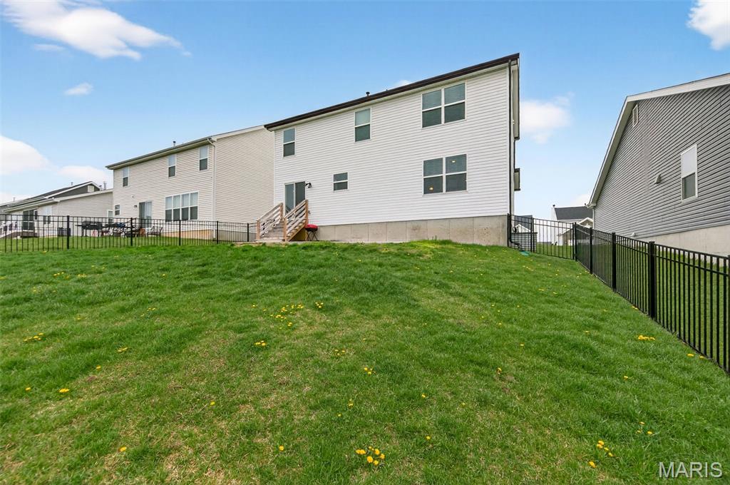 Beautiful two-story home built in 2022, located in the desirable Wentzville area. This modern residence offers 3 spacious bedrooms and 2.5 bathrooms, along with smart home features designed for convenience and energy efficiency. The main level features a comfortable and functional layout, perfect for everyday living and entertaining, with the laundry conveniently located on the main floor. Upstairs, all three bedrooms provide privacy and generous space, including a primary suite with a modern bath and walk-in closet. Enjoy year-round comfort and lower utility costs with dual-zone HVAC systems. The fenced backyard is ideal for entertaining, pets, or family gatherings. The unfinished basement offers endless potential for future customization. Additional highlights include a 2-car garage and true move-in ready condition. This home is a must-see!