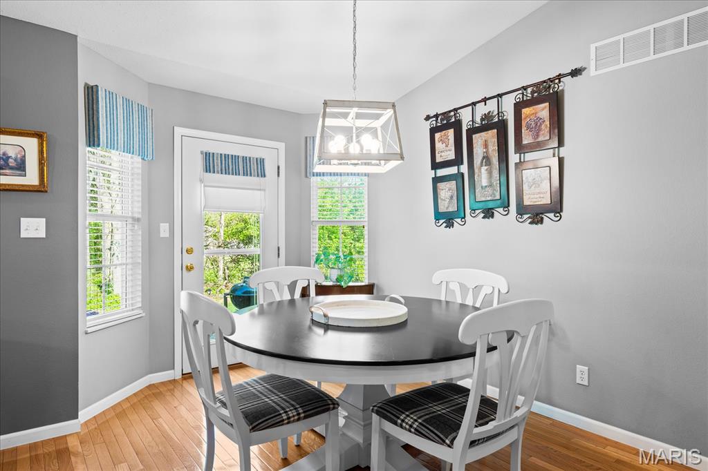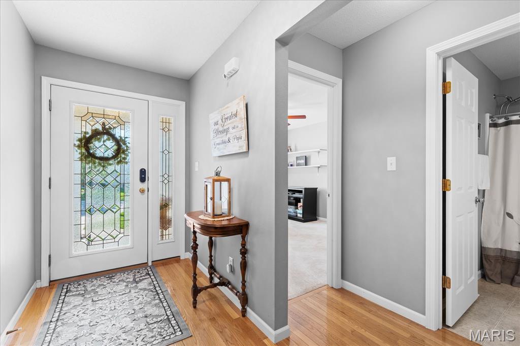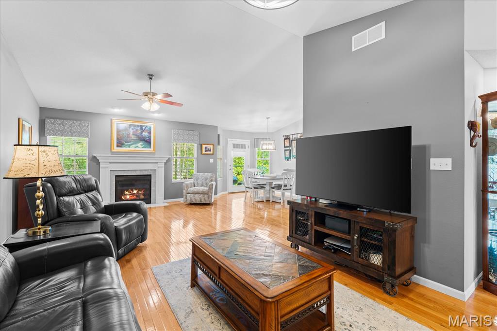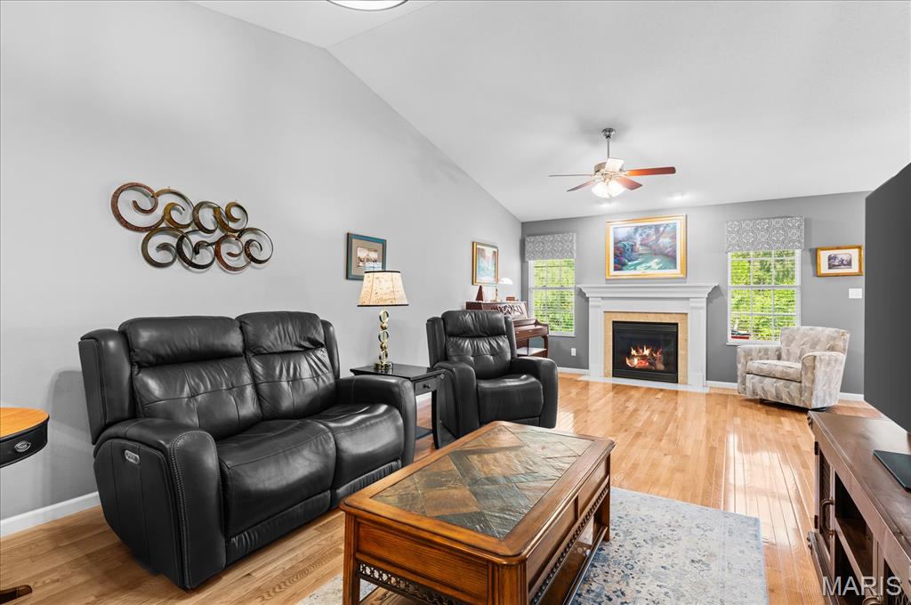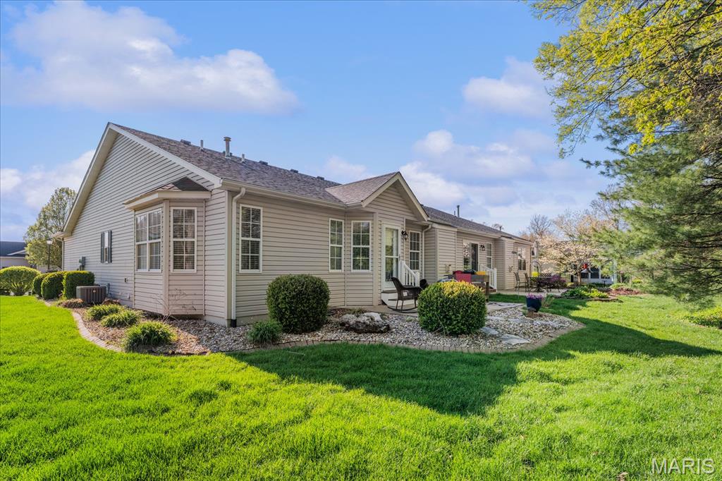 Experience true peace of mind with maintenance-free living in O'Fallon, IL! Welcome to this stunning 3-bedroom, 3-bath villa in the highly sought-after Braeswood Villas, perfectly situated on a premium lot backing to a private, wooded tree line. Showcasing the popular Brighton floor plan, this home offers a highly desirable split-bedroom layout designed for comfort and privacy. The open-concept main level is an entertainer's dream, featuring soaring vaulted ceilings and gleaming real hardwood flooring throughout. Enjoy a spacious family room with a cozy fireplace, a formal dining area, and a bright eat-in kitchen equipped with newer appliances. Retreat to the oversized primary suite, which boasts a vaulted ceiling, a charming bay window seating area, a large walk-in closet, and a private en-suite bath with dual sinks and an upgraded glass-door shower. A generously sized guest bedroom and full hall bath complete the main floor. Downstairs, the fully finished basement drastically expands your living space! It features a massive family room, a recreation area, a 3rd guest bedroom, a 3rd full bath, and generous unfinished storage space. Step outside to relax on your concrete patio overlooking the serene, tree-lined backyard. With a low HOA of just $115/month covering lawn care, irrigation system maintenance, and snow removal, you can truly enjoy a lock-and-leave lifestyle. A true O'Fallon must-see!l.