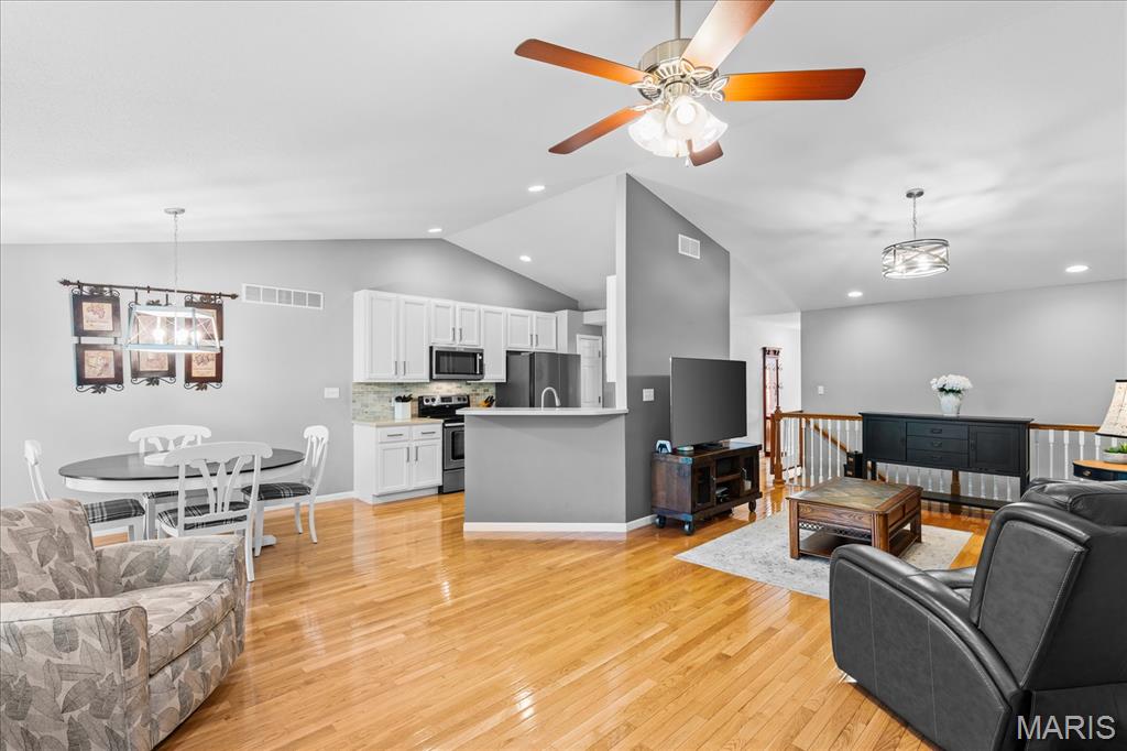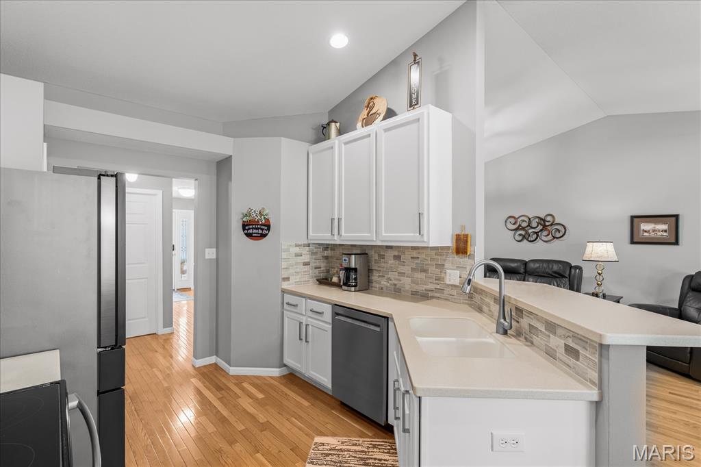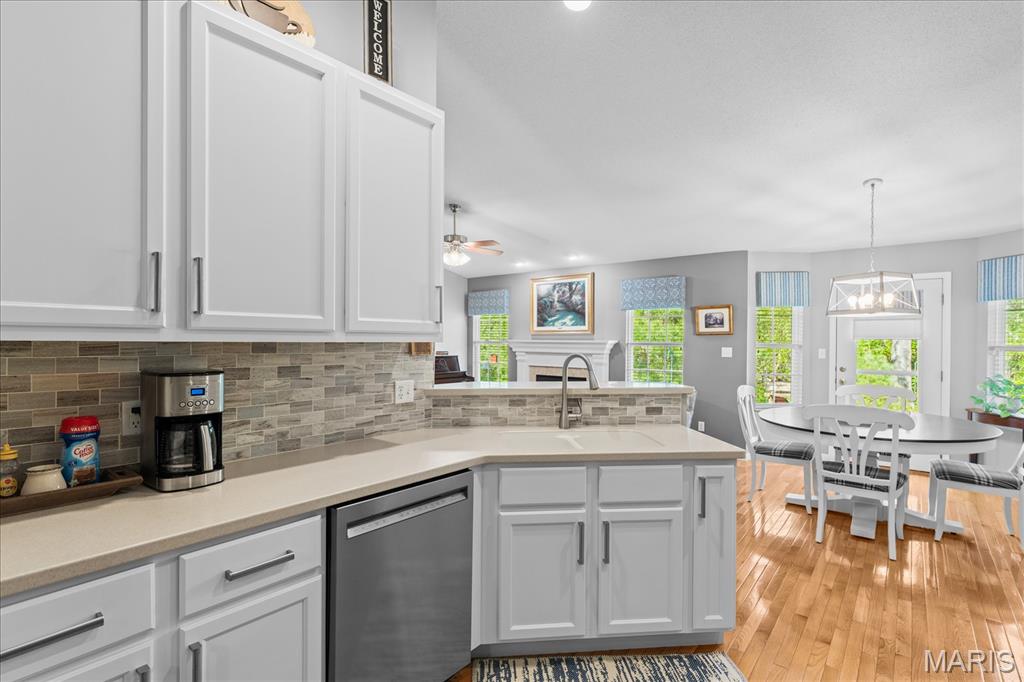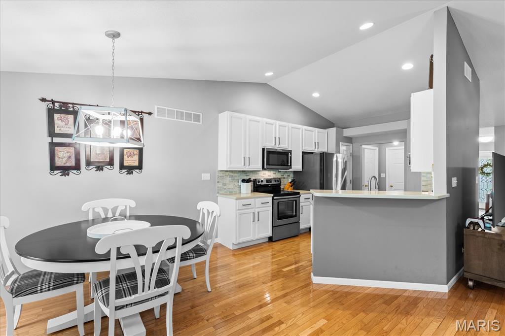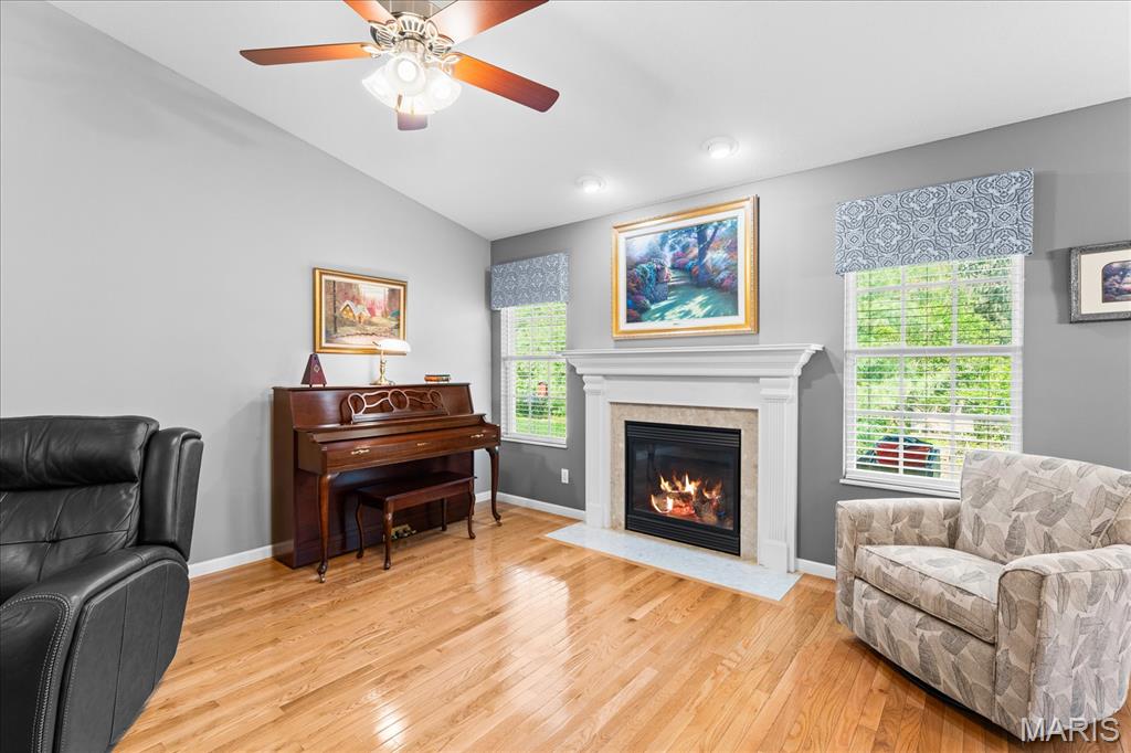 Experience true peace of mind with maintenance-free living in O'Fallon, IL! Welcome to this stunning 3-bedroom, 3-bath villa in the highly sought-after Braeswood Villas, perfectly situated on a premium lot backing to a private, wooded tree line. Showcasing the popular Brighton floor plan, this home offers a highly desirable split-bedroom layout designed for comfort and privacy. The open-concept main level is an entertainer's dream, featuring soaring vaulted ceilings and gleaming real hardwood flooring throughout. Enjoy a spacious family room with a cozy fireplace, a formal dining area, and a bright eat-in kitchen equipped with newer appliances. Retreat to the oversized primary suite, which boasts a vaulted ceiling, a charming bay window seating area, a large walk-in closet, and a private en-suite bath with dual sinks and an upgraded glass-door shower. A generously sized guest bedroom and full hall bath complete the main floor. Downstairs, the fully finished basement drastically expands your living space! It features a massive family room, a recreation area, a 3rd guest bedroom, a 3rd full bath, and generous unfinished storage space. Step outside to relax on your concrete patio overlooking the serene, tree-lined backyard. With a low HOA of just $115/month covering lawn care, irrigation system maintenance, and snow removal, you can truly enjoy a lock-and-leave lifestyle. A true O'Fallon must-see!l.
