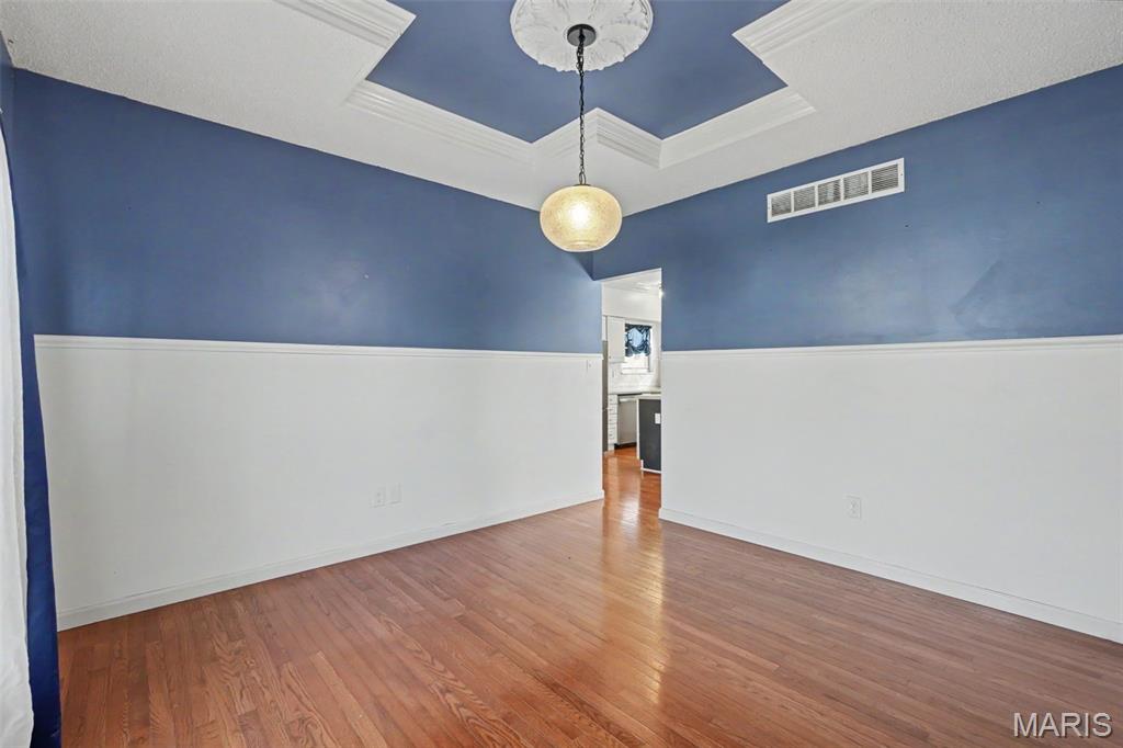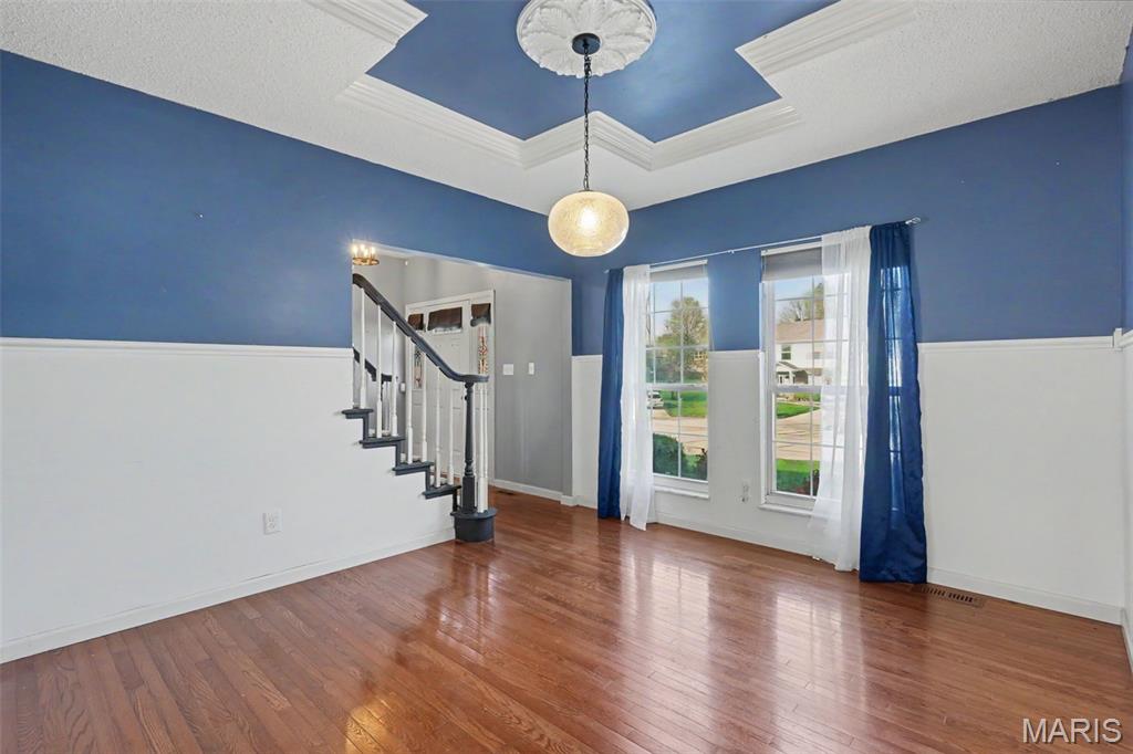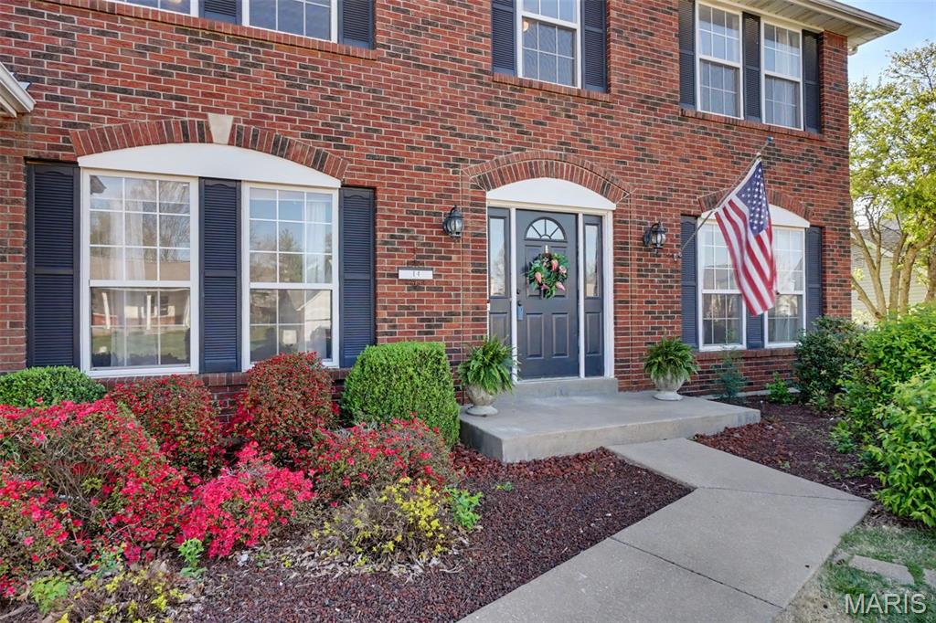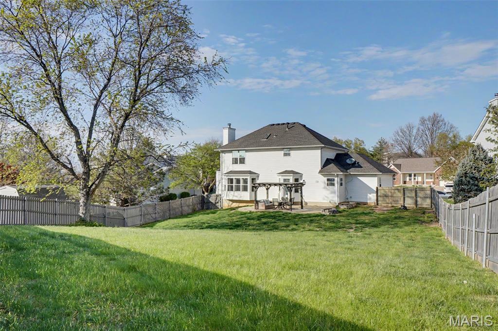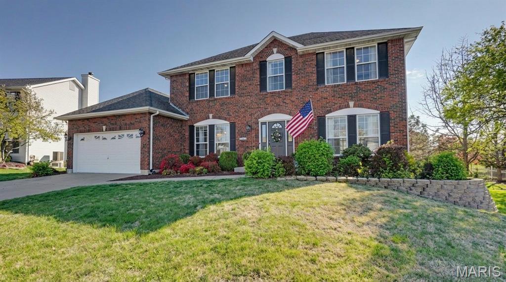 Stylish, 2-story home boasting all-brick front elevation. in The Summit at St Charles, the subdivision NO ONE wants to leave! Enter to find hardwood floors flowing throughout the main level. Formal dining to the left and Office/flex room to the right. Both rooms feature beautiful, custom tray ceilings with crown molding in-lays. The office also features double pocket doors for added privacy. The living room is huge with stylish built-in bookcases, WB fireplace and bay windows. Notice the convenient staging and serving counter with wet bar sink as you proceed through the breakfast room and into the kitchen, featuring stainless appliances. The 2 yr-old fridge can stay! Spacious laundry/mud room sits between the kitchen and the garage. Head upstairs to find the ginormous master bedroom featuring a huge, walk-in closet and ensuite bath with separate tub, step-in shower and double-bowl vanity. Three more ample-sized bedrooms, each with its own ceiling fan, plus another full bath, finish this level. The basement is clean and dry with a bathroom rough-in, and the possibilities are limited only by your imagination. Step out back to find your HUGE backyard! The beautiful, privacy fence was replaced just last year! Enjoy family or entertaining with privacy on the huge patio with built-in pergola, fire pit and patio furniture; all of which will stay! This subdivision is loved by everyone! Sidewalks, streetlights, a walking trail and a stocked pond! Easy access to highways 94, 364 and 70. Close to nearby shopping and dining. Homes rarely become available in The Summit, so you'd better grab this one before it's gone! Who knows when you'll get another chance at this neighborhood! The buyer is being offered a 1-yr Home Protection Plan provided by the seller and Choice Home Warranty.