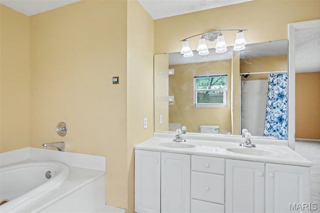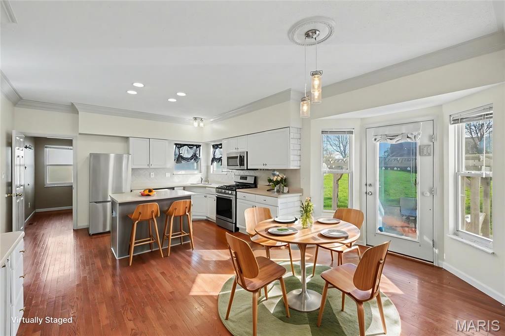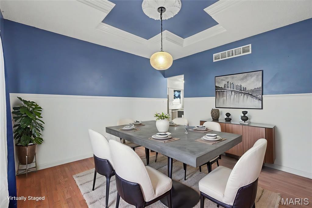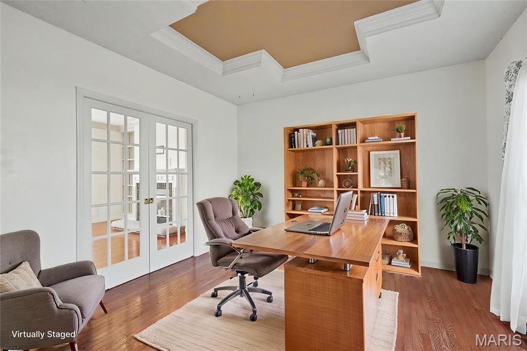 Stylish, 2-story home boasting all-brick front elevation. in The Summit at St Charles, the subdivision NO ONE wants to leave! Enter to find hardwood floors flowing throughout the main level. Formal dining to the left and Office/flex room to the right. Both rooms feature beautiful, custom tray ceilings with crown molding in-lays. The office also features double pocket doors for added privacy. The living room is huge with stylish built-in bookcases, WB fireplace and bay windows. Notice the convenient staging and serving counter with wet bar sink as you proceed through the breakfast room and into the kitchen, featuring stainless appliances. The 2 yr-old fridge can stay! Spacious laundry/mud room sits between the kitchen and the garage. Head upstairs to find the ginormous master bedroom featuring a huge, walk-in closet and ensuite bath with separate tub, step-in shower and double-bowl vanity. Three more ample-sized bedrooms, each with its own ceiling fan, plus another full bath, finish this level. The basement is clean and dry with a bathroom rough-in, and the possibilities are limited only by your imagination. Step out back to find your HUGE backyard! The beautiful, privacy fence was replaced just last year! Enjoy family or entertaining with privacy on the huge patio with built-in pergola, fire pit and patio furniture; all of which will stay! This subdivision is loved by everyone! Sidewalks, streetlights, a walking trail and a stocked pond! Easy access to highways 94, 364 and 70. Close to nearby shopping and dining. Homes rarely become available in The Summit, so you'd better grab this one before it's gone! Who knows when you'll get another chance at this neighborhood! The buyer is being offered a 1-yr Home Protection Plan provided by the seller and Choice Home Warranty.