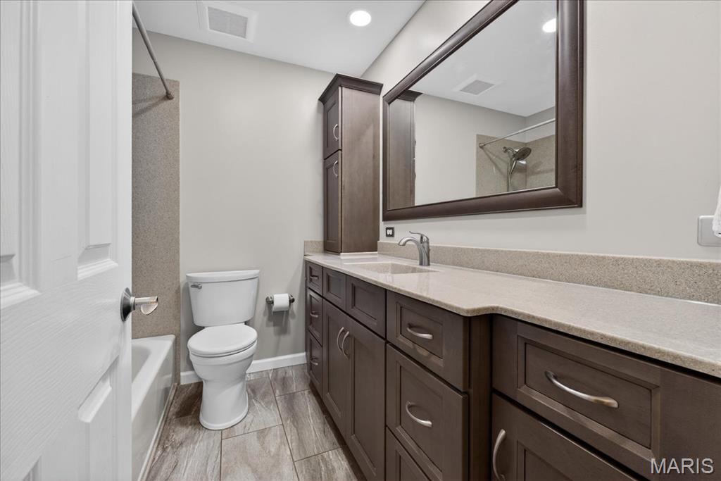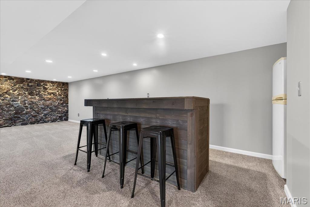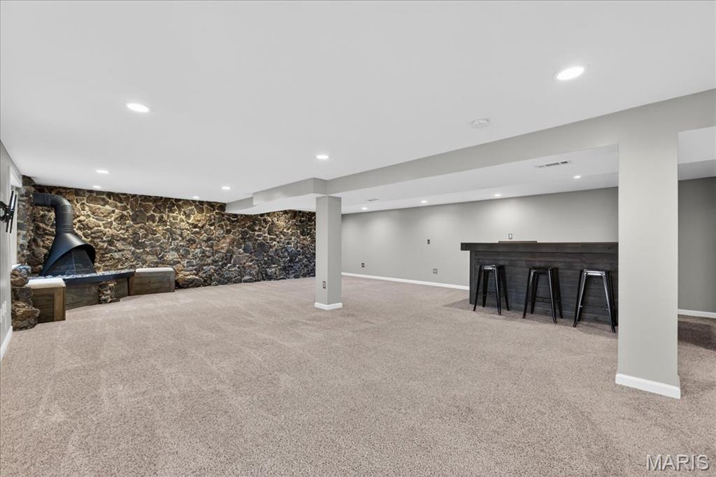 Welcome to this beautifully updated 3 bed, 3 full bath ranch home nestled on a quiet cul-de-sac in St. Charles! From the moment you arrive, you’ll appreciate the charming curb appeal with brick front and covered front porch. Inside, you’ll love the spacious layout designed for both comfort and entertaining starting with bright and inviting living room featuring hardwood floors and filled with natural light. Stunning updated kitchen features custom cabinetry, granite countertops, tile backsplash, and center island. The adjacent dining area flows seamlessly to the expansive deck—perfect for relaxing or hosting—overlooking your private backyard that backs directly to Heatherbrook Park complete with playground, trails and fishing pond. The finished walk-out lower level offers incredible additional living space with a large family room, bar area, sleeping space, and full bath—ideal for guests, entertaining, or multi-generational living. With direct access to the park, you’ll love the open green space, playground, and peaceful setting right in your backyard. This home truly offers the perfect blend of indoor comfort and outdoor lifestyle—don’t miss your chance to make it yours! See attachment for full list of updates.