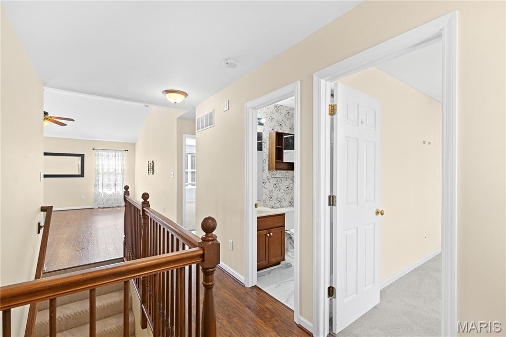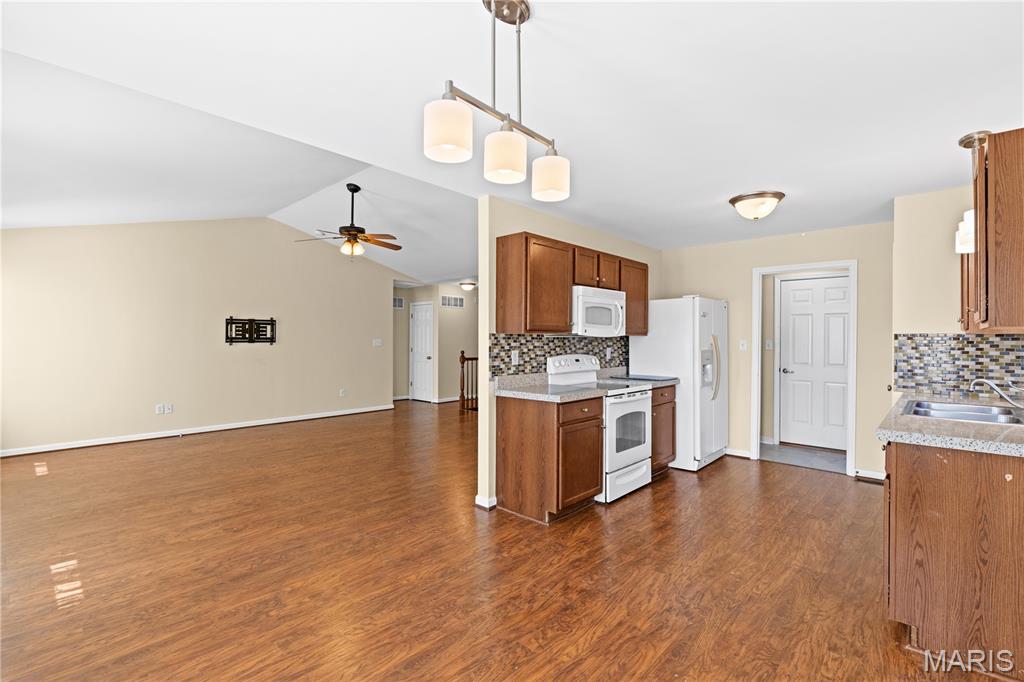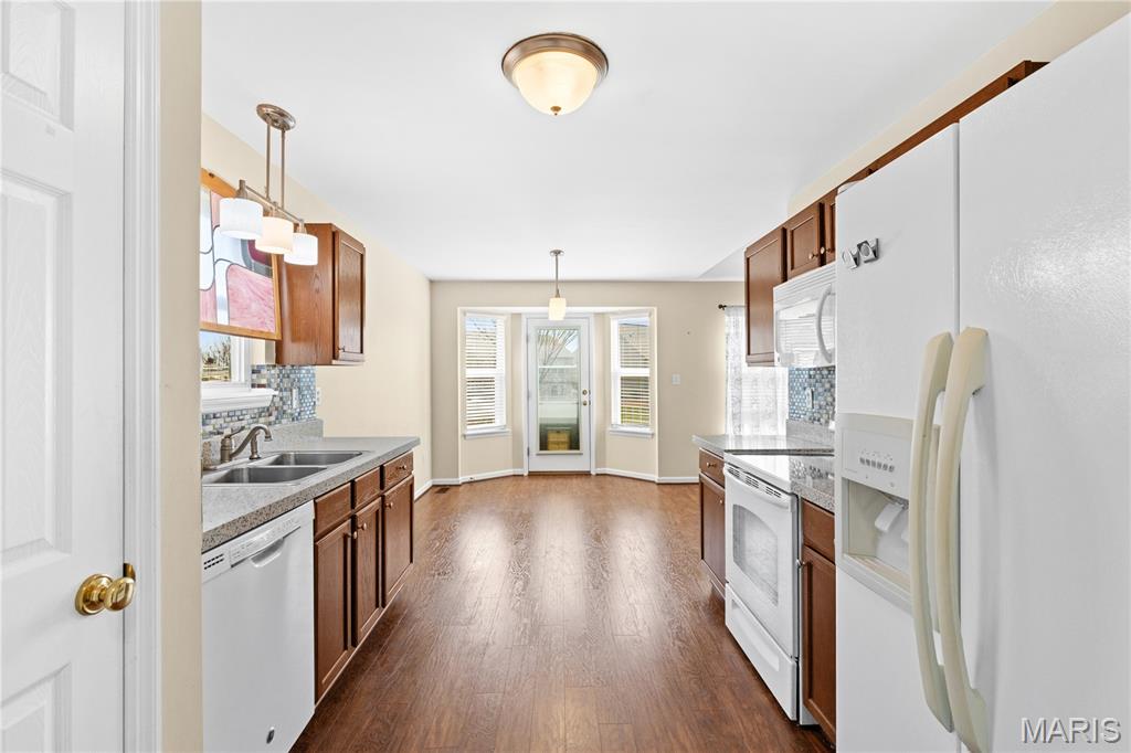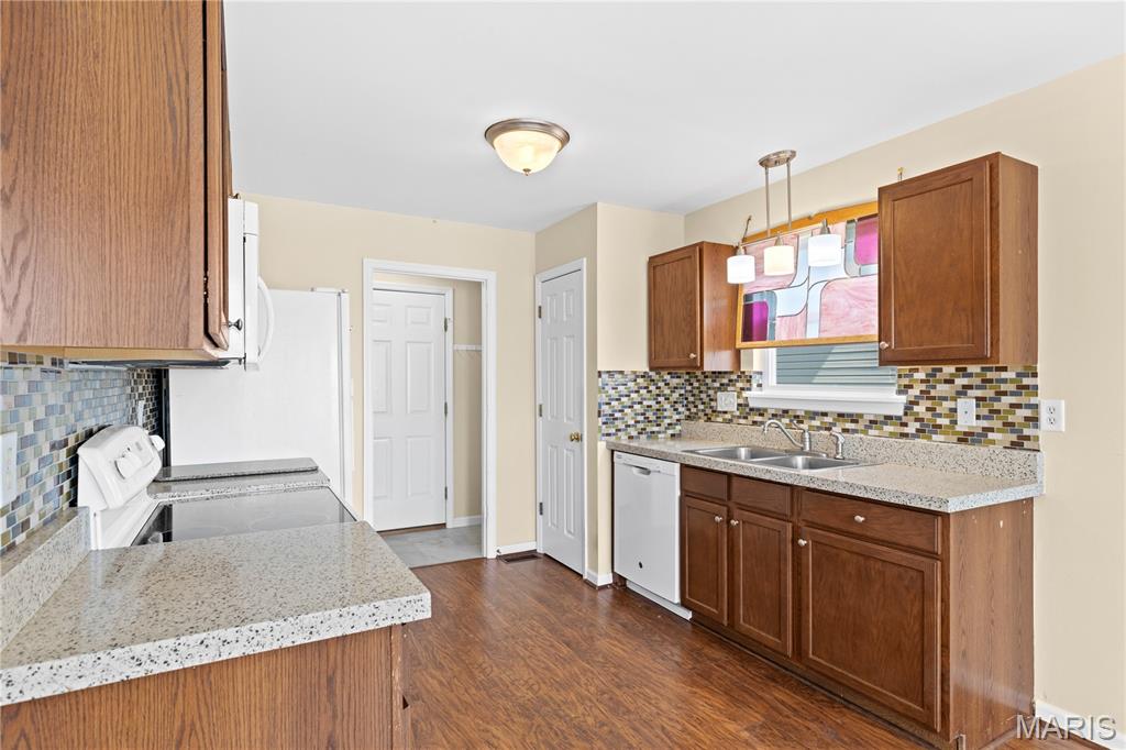 Well maintained 2 bed 2 bath ranch in the desirable Winghaven community offering great curb appeal, a functional layout, and a spacious backyard. The main level features an open living area with plenty of natural light that flows into the kitchen and breakfast space, making it ideal for everyday living and entertaining. Kitchen provides cabinet and counter space along with easy access to the deck, creating a seamless indoor/outdoor setup. Step outside to an elevated deck overlooking the yard with additional patio space below, perfect for gatherings or relaxing evenings. Primary suite offers a comfortable layout and private bath. Secondary bedroom is well sized with convenient access to a full hall bath. Main floor laundry adds everyday convenience. Full unfinished basement is clean, open, and includes an egress window allowing for the potential of adding a conforming third bedroom with future finish, along with plenty of storage space and room to expand. Two car oversized garage, well maintained condition, and a great opportunity to get into Winghaven in a location close to shopping, restaurants, and major highways. Come see it today.
