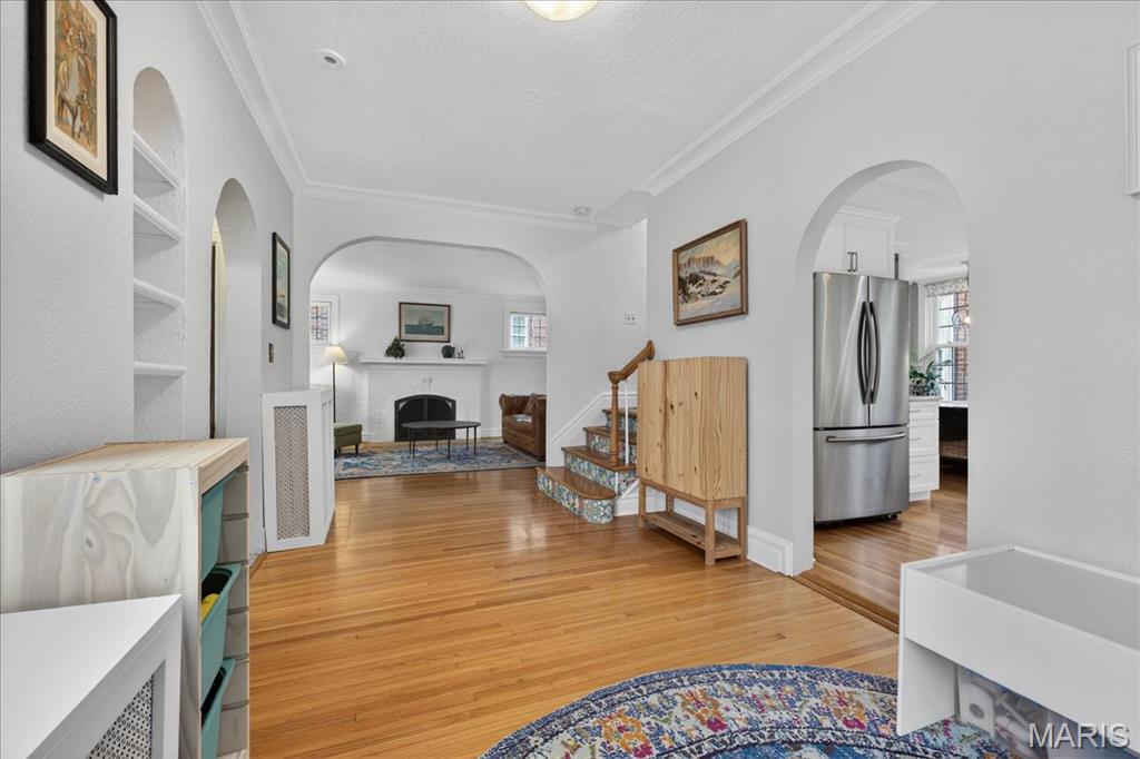 Tucked away in the sought after Alta Dena neighborhood, Kingsbury offers gleaming hardwood floors, gorgeous architectural details and happy light filled rooms throughout. The updated custom kitchen offers white cabinetry, gorgeous stone counters, stainless appliances and a charming breakfast room. The dining room walks out to the deck offering outdoor living and a view of the private backyard. The large living rm with fireplace boasts large windows, making it great for entertaining. A guest powder rm and open sitting room/office complete the first floor. 3 large bedrooms and updated hall bath with an office/sunroom comprise the second floor. The lower level offers additional living space, washer and dryer and storage. Walk to downtown Clayton shops and restaurants. Location cannot be beat.