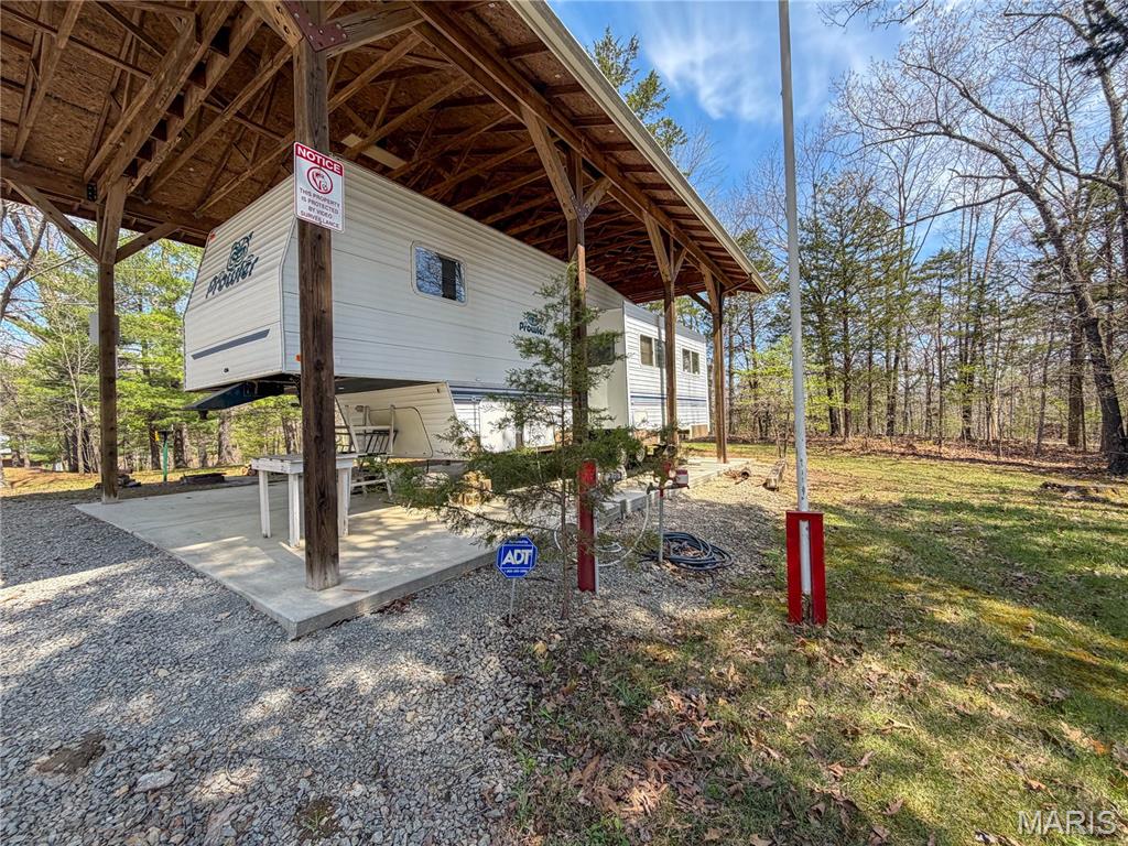 Discover the perfect lake-life getaway in this welcoming gated community, offering four level lots with just the right number of trees for privacy and shade. Move-in ready with a well-kept 2002 Fleetwood camper, well, septic holding tank, electric, and two spacious storage sheds. Enjoy gatherings under the large pavilion, relax around the built-in firepit, and take advantage of the paved road access. Just a short walk to one of the community’s fishing ponds and surrounded by 400 acres of lake-style living, this is an ideal spot for weekend escapes or full-time enjoyment. Pride of ownership shows throughout—your summer retreat is waiting.