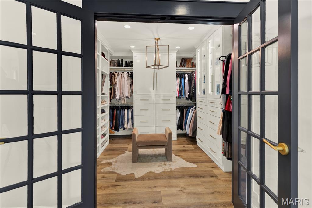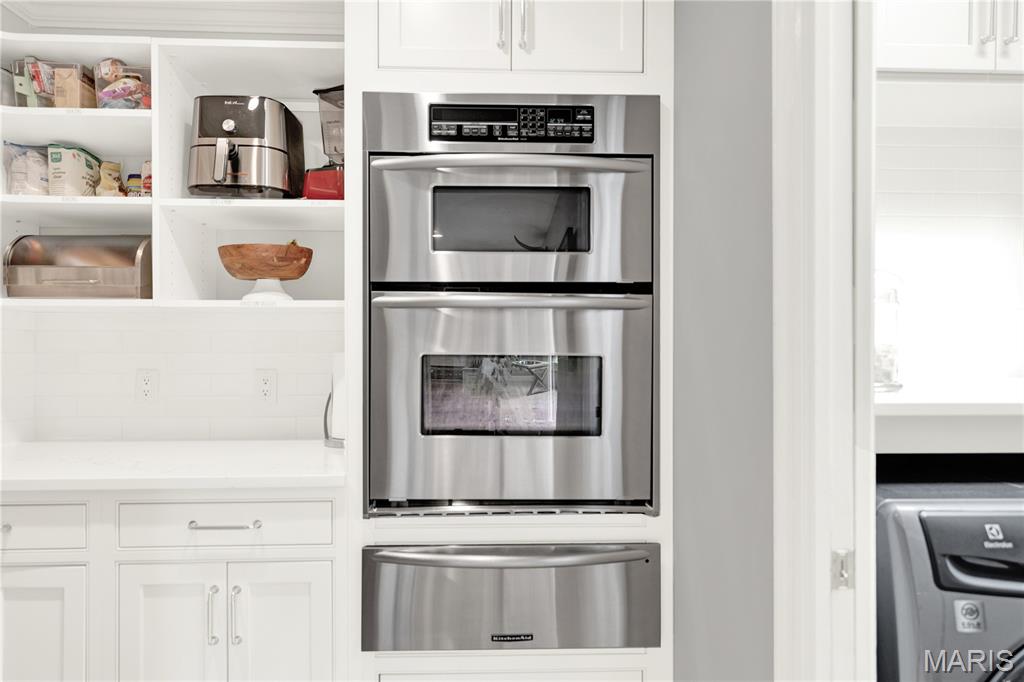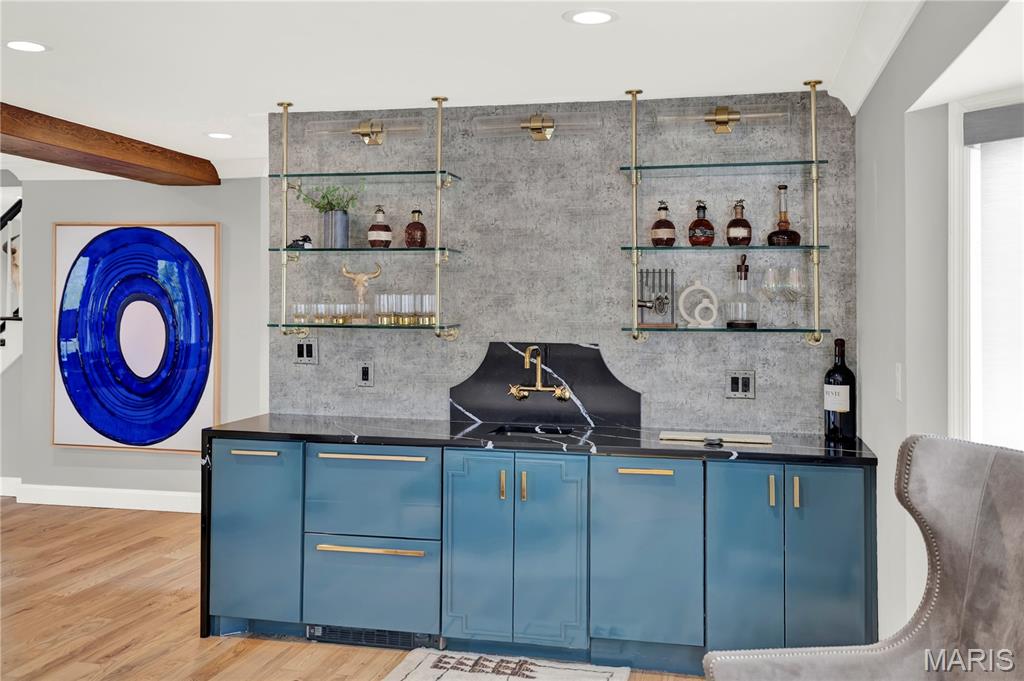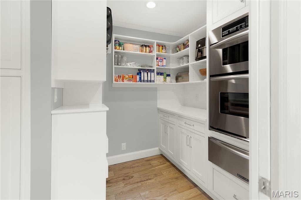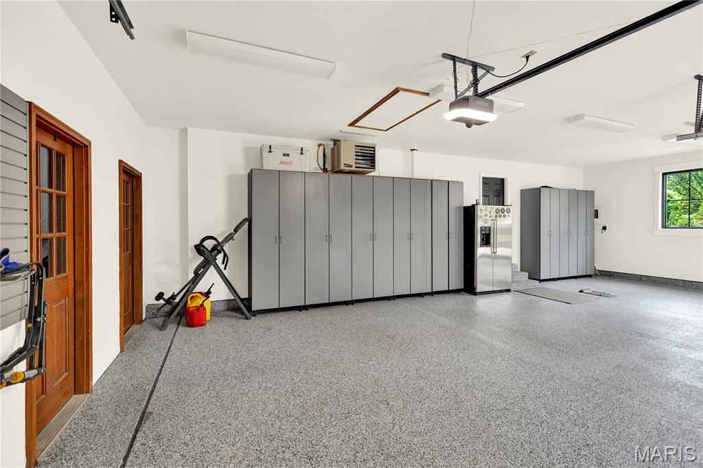 Nestled at the end of a quiet cul-de-sac and backing to completely private woods, this spectacular Contemporary Craftsman has been renovated from top to bottom with zero compromises. Every inch has been touched, every and every space reimagined — delivering the feel of new construction with the warmth of an established neighborhood. The main floor was opened up to create seamless living and dining spaces, anchored by re-sanded hardwood floors, a new fireplace, and a fully outfitted living room bar with sink, dishwasher, double beverage drawer, and ice maker. The chef's kitchen features a Thermador gas range and oven, Thermador dishwasher, built-in microwave, ice maker, and a butler's pantry with a KitchenAid second oven and warming drawer. New Hardie board siding, a new roof, all-new Pella windows with custom casing, new K-style gutters with square downspouts, new automatic shades, new iron front door, new garage doors, and completely redesigned mature landscaping with lighting complete a stunning first impression. Upstairs, the primary suite was completely gutted and rebuilt — featuring a spa-caliber bathroom and custom floor-to-ceiling built-ins throughout the bedroom and closet. A second HVAC unit serves the upper level, and a fully remodeled second bathroom and new luxury vinyl tile flooring round out the floor. The finished walkout lower level is an entertainer's dream — stepping directly out to the pool. A full bar with Sub-Zero-caliber refrigerator, ice maker, drawer dishwasher, and microwave anchors the space alongside a fireplace, movie room, additional bedroom, and a full bathroom with steam shower. The seamless indoor-outdoor flow makes this level the ultimate warm-weather entertaining hub. Outside, a resort-style backyard backs to private woods with a stunning pool featuring all-new tile, coping, equipment, and heater. A fully equipped outdoor kitchen and bar — complete with new cabinetry, beverage drawer refrigerator, sink, built-in cooler, Bull barbecue pit on a dedicated gas line, pizza oven, warming drawer, Bull refrigerator, and large gas fire pit — create an outdoor entertaining environment that is truly second to none. A finished and heated garage with epoxy flooring, whole-home Sonos system indoors and out, and professionally landscaped grounds with architectural lighting complete a home that is truly without equal in Town & Country.